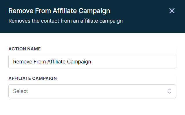 Removes an affiliate from a campaign. It lets you choose which campaign to remove them from using a dropdown.
