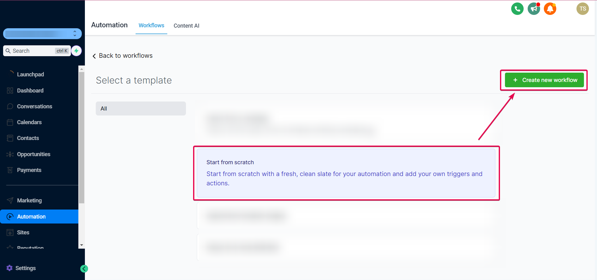 Head to Automation>Workflows>Create Workflow.