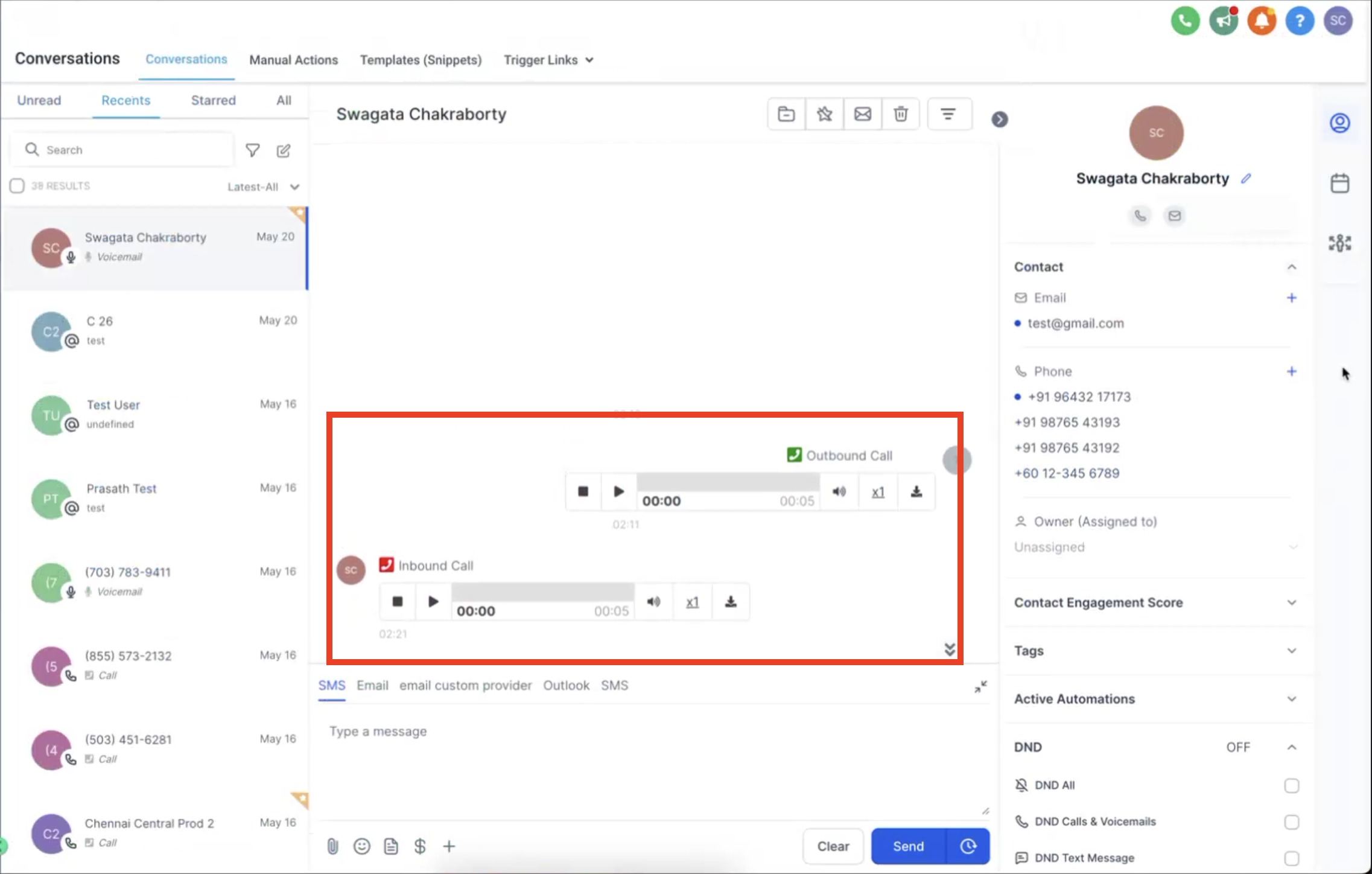 Call recordings can also be passed to the CRM and will be shown within the Conversation.