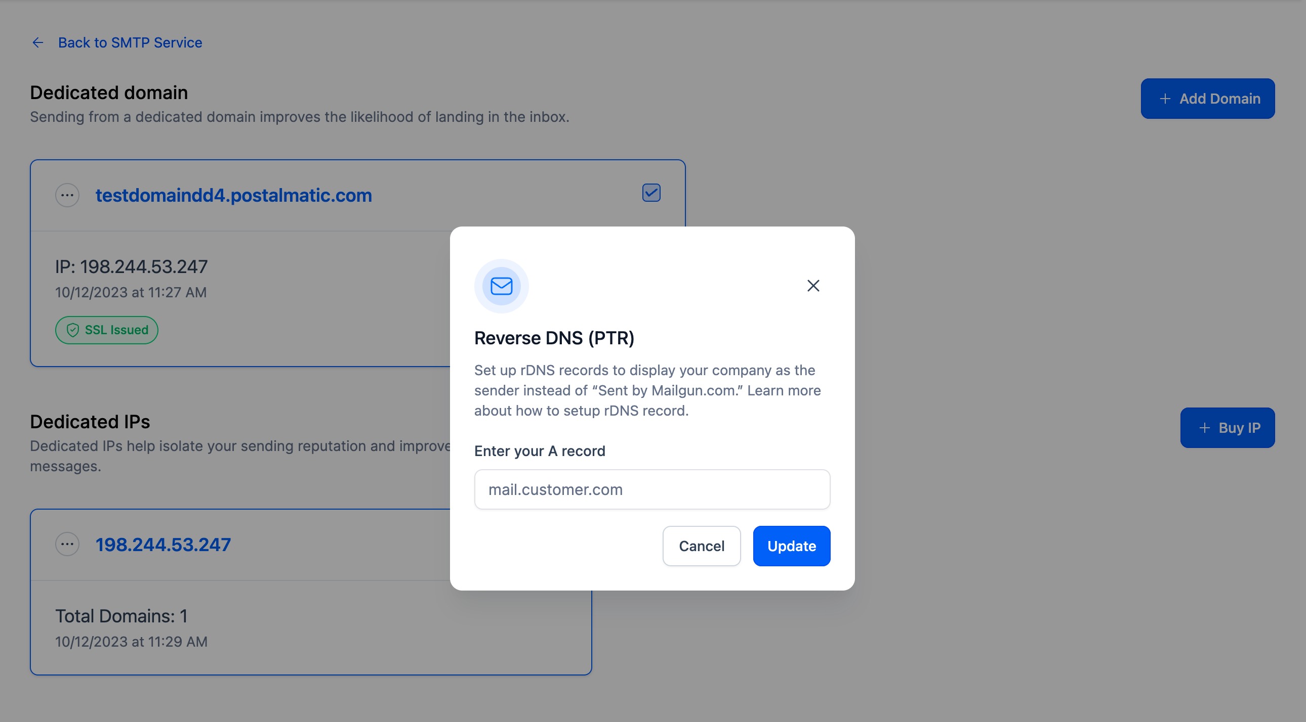 Reverse DNS white labeling - Dedicated IP