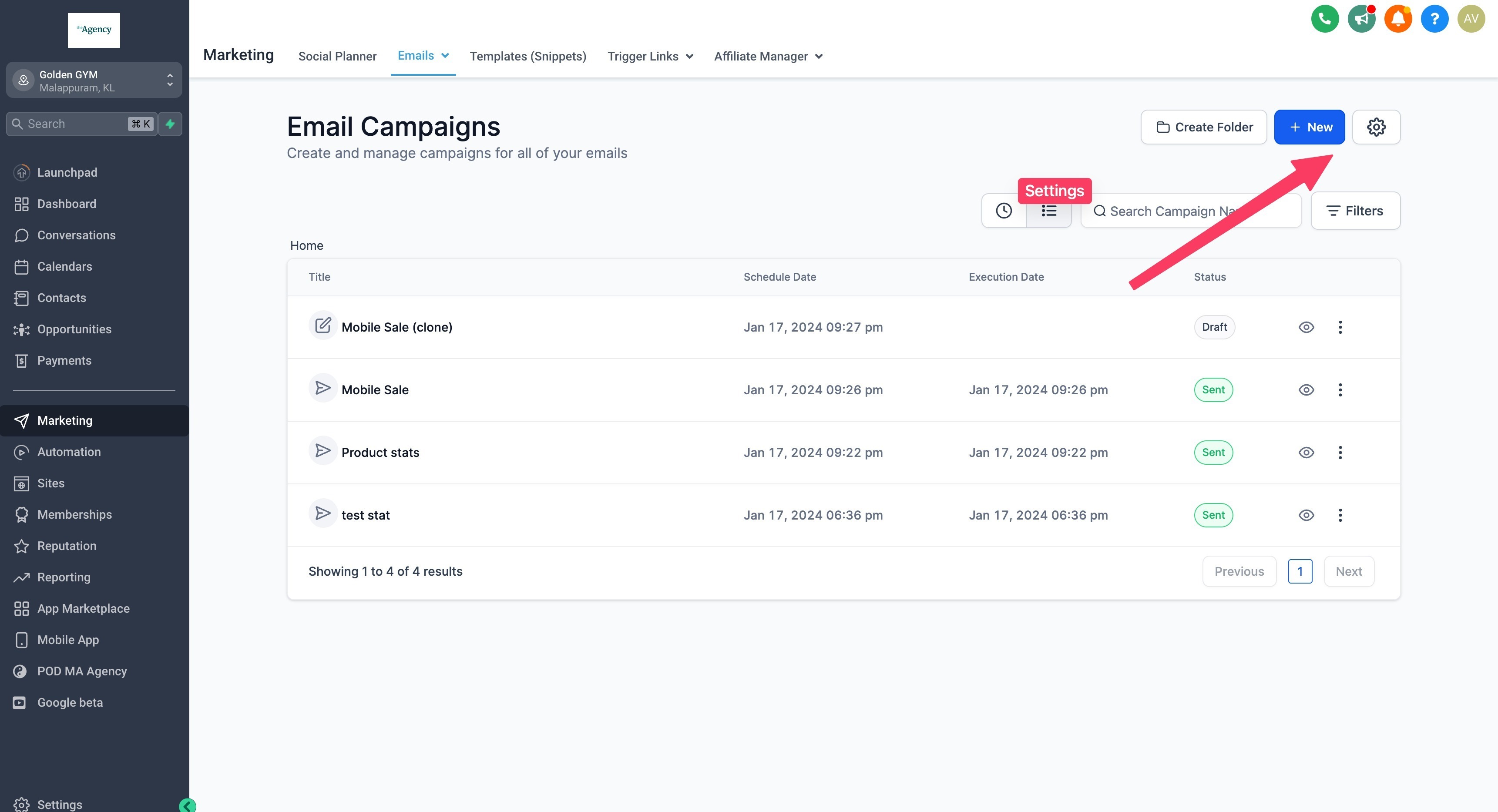 - Go to "Marketing" > "Emails" > "Campaigns."