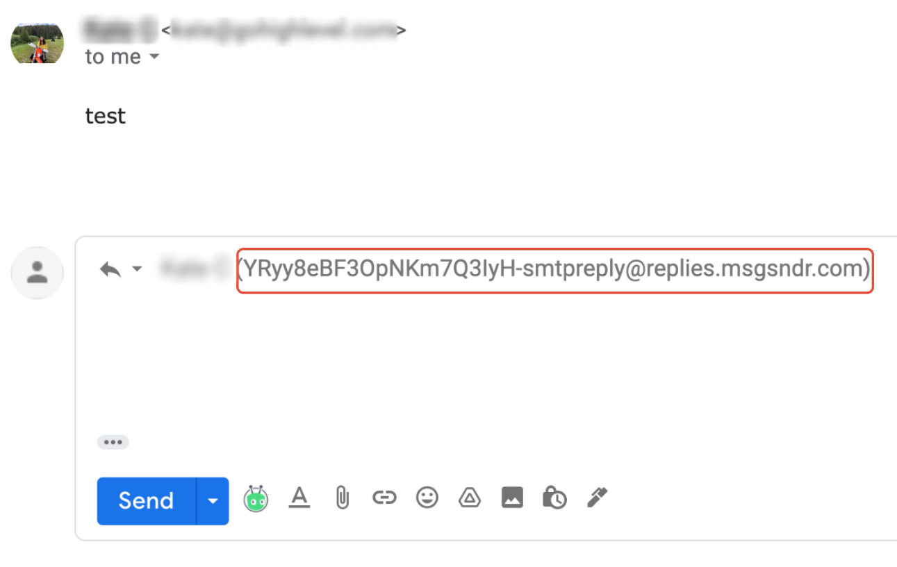 The highlighted email shown in the screenshot below will be the reply-to email address. So we can capture the email replies back into the Conversation tab to read, manually respond or trigger a response using tags, etc. This will be the limitation of using SMTP integration.