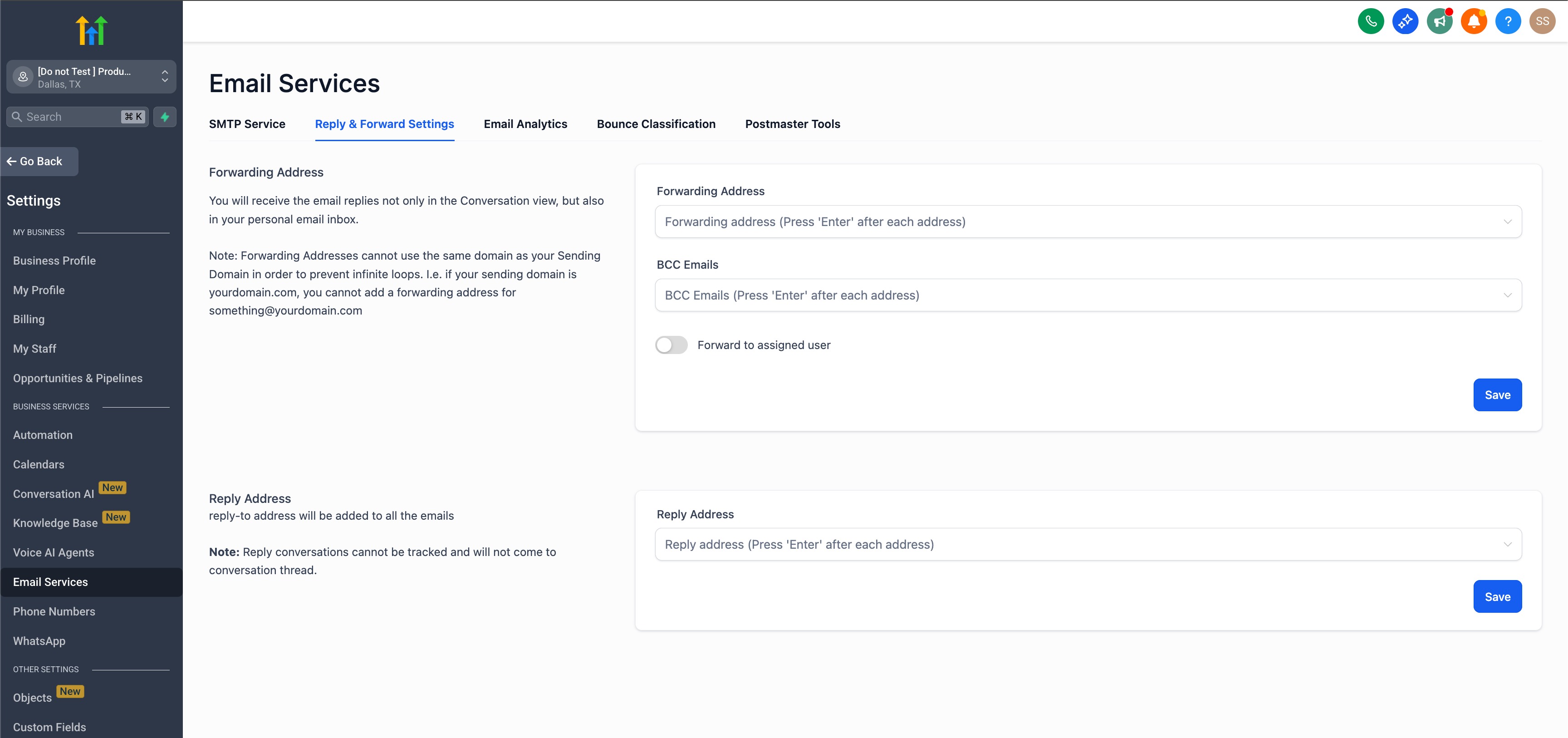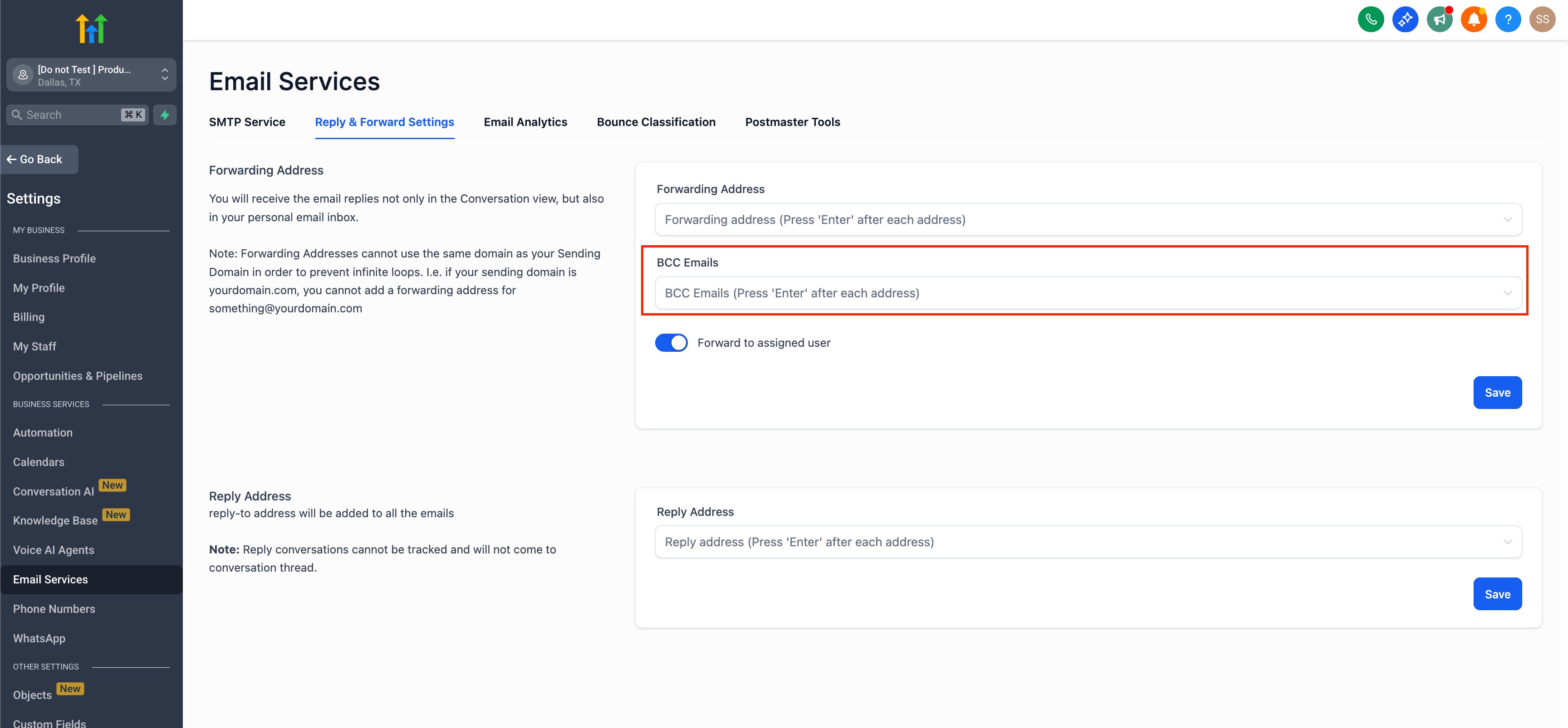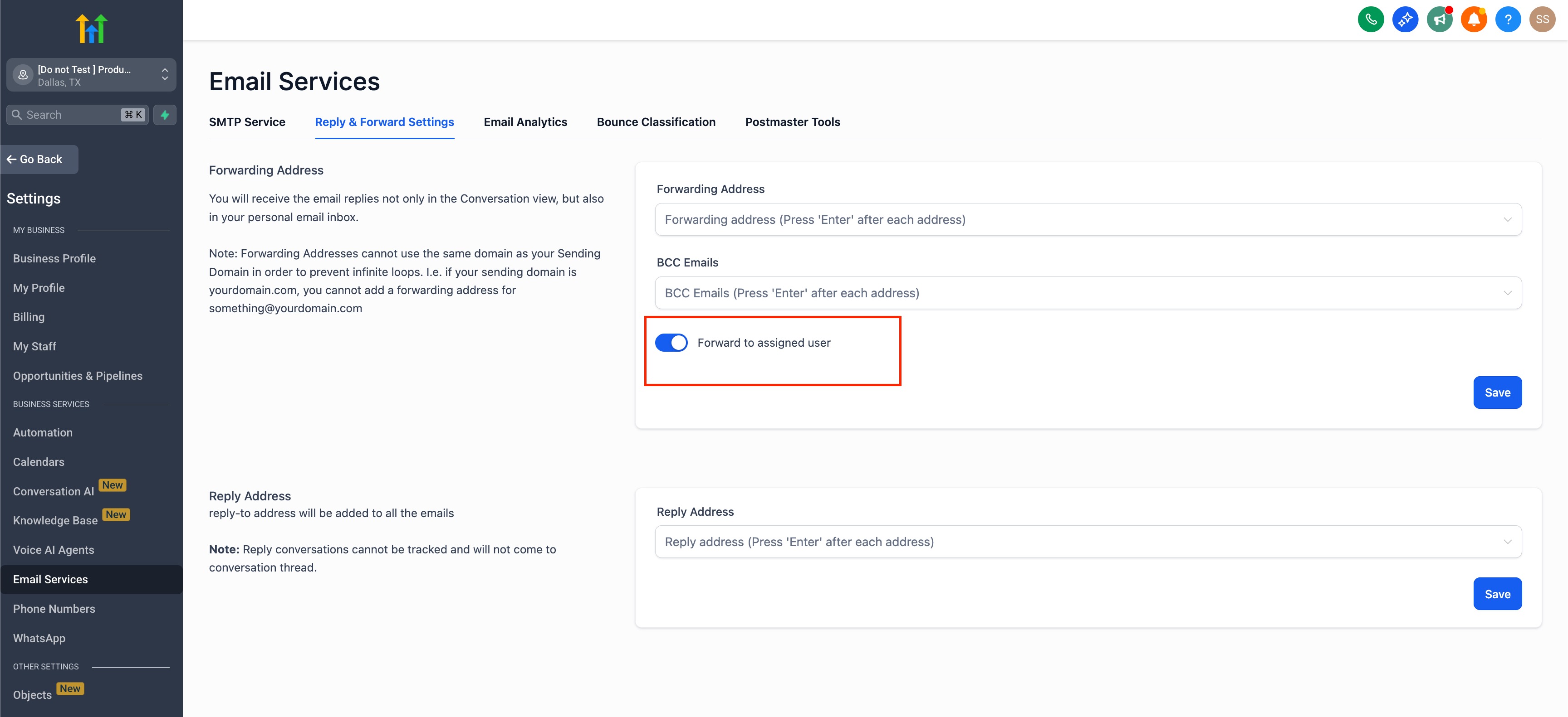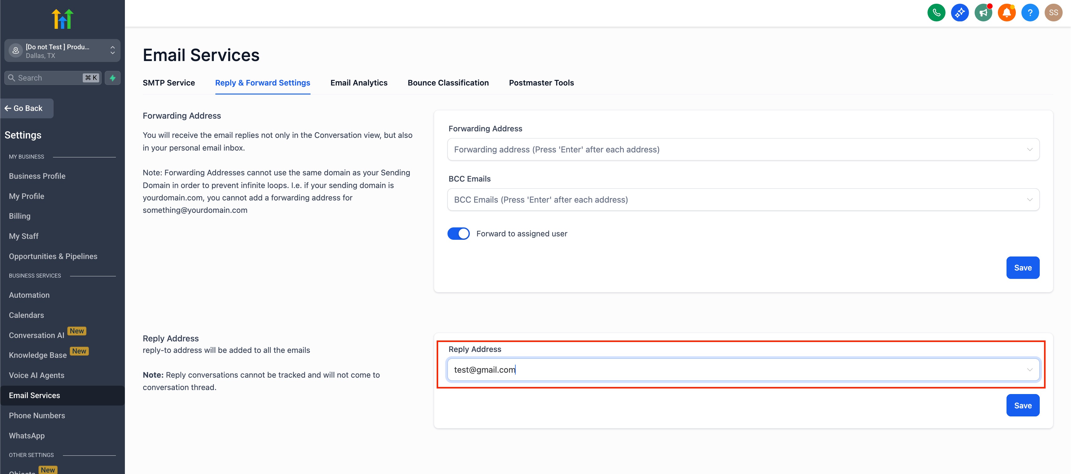 Make sure to Save once you have entered a Reply Address.