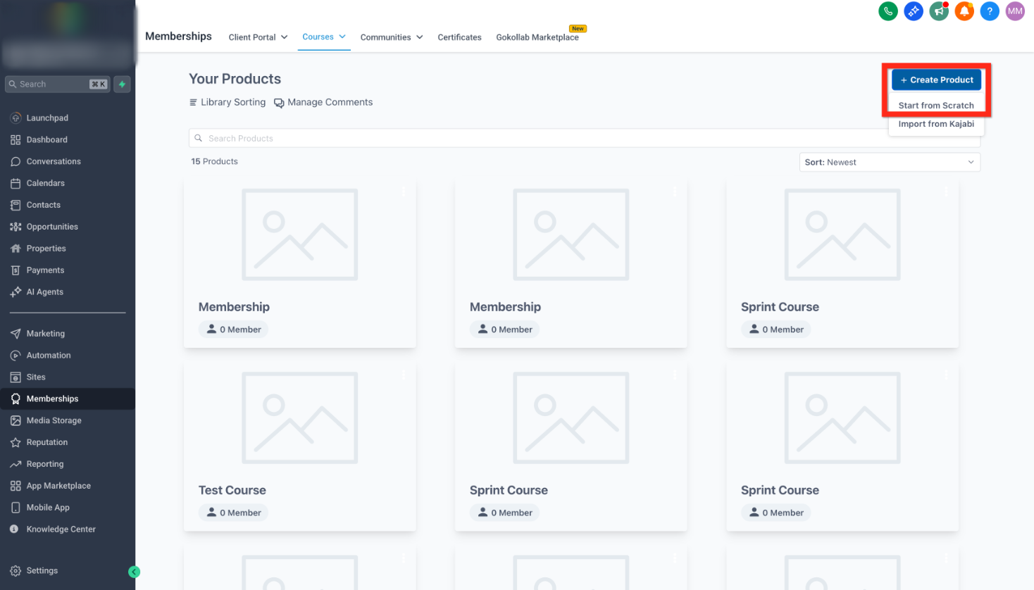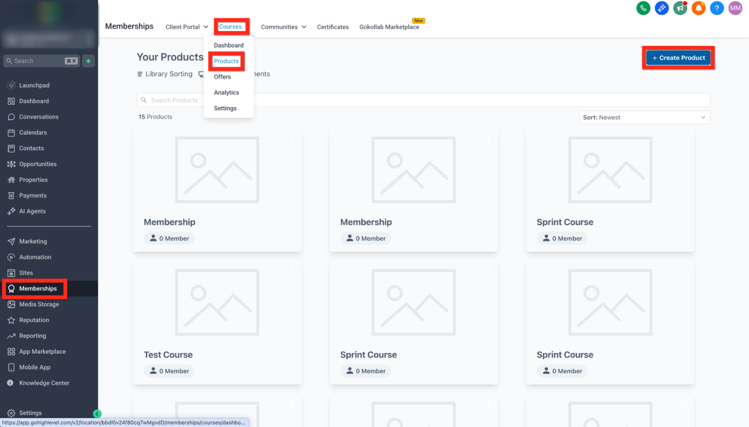 - Navigate to Memberships > Courses > Products.