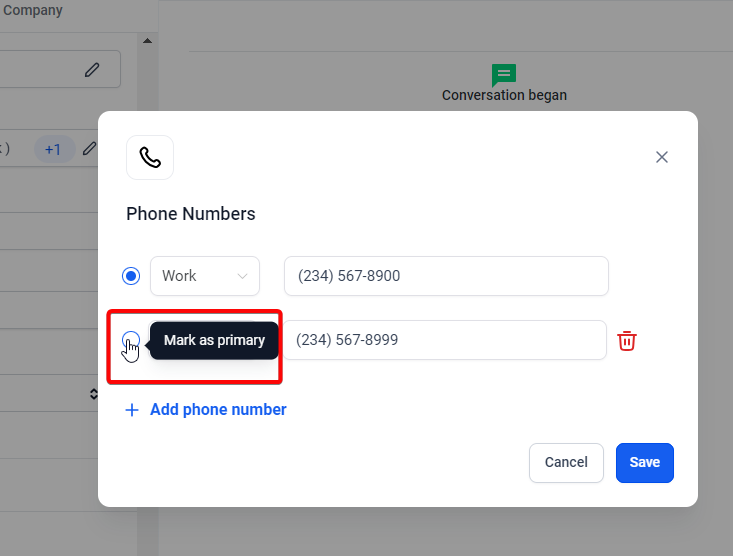 Multiple Phone Numbers for a Contact allows users to efficiently manage multiple phone numbers for a single contact efficiently, thereby improving communication and organization. From adding and editing multiple numbers to designating a primary contact, this feature is about optimizing user experience and streamlining workflows.