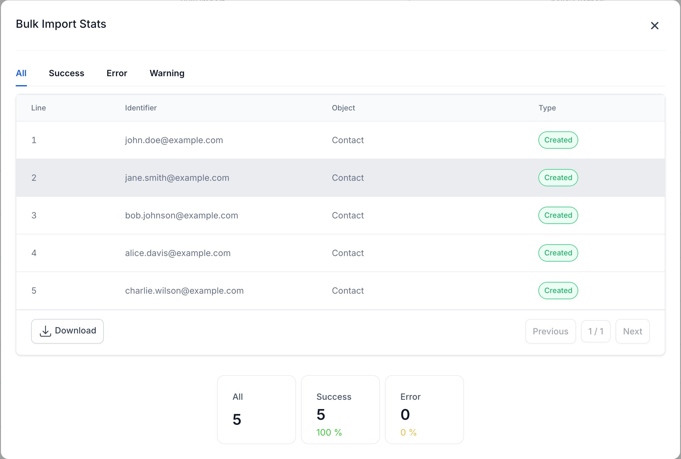 De-duplication preferences are respected for finding contacts for creating and updating contacts. - Map Your Fields: Ensure each column in your file is correctly mapped to the corresponding field in the system.