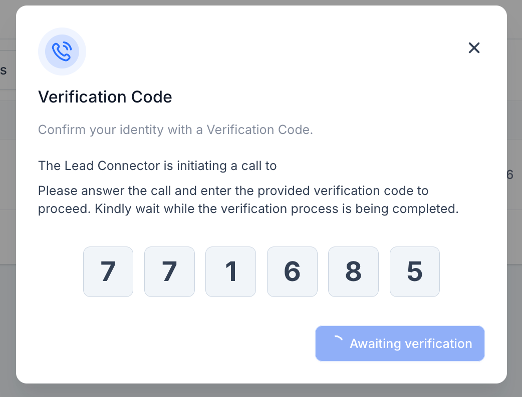- After clicking verify number you will get a pop up with verification code and a call to your phone number for verification. You will be asked to enter the verification code. Please answer the call and enter the provided verification code to proceed. Once this is done your number will be verified and will added under verified caller iD tab.
