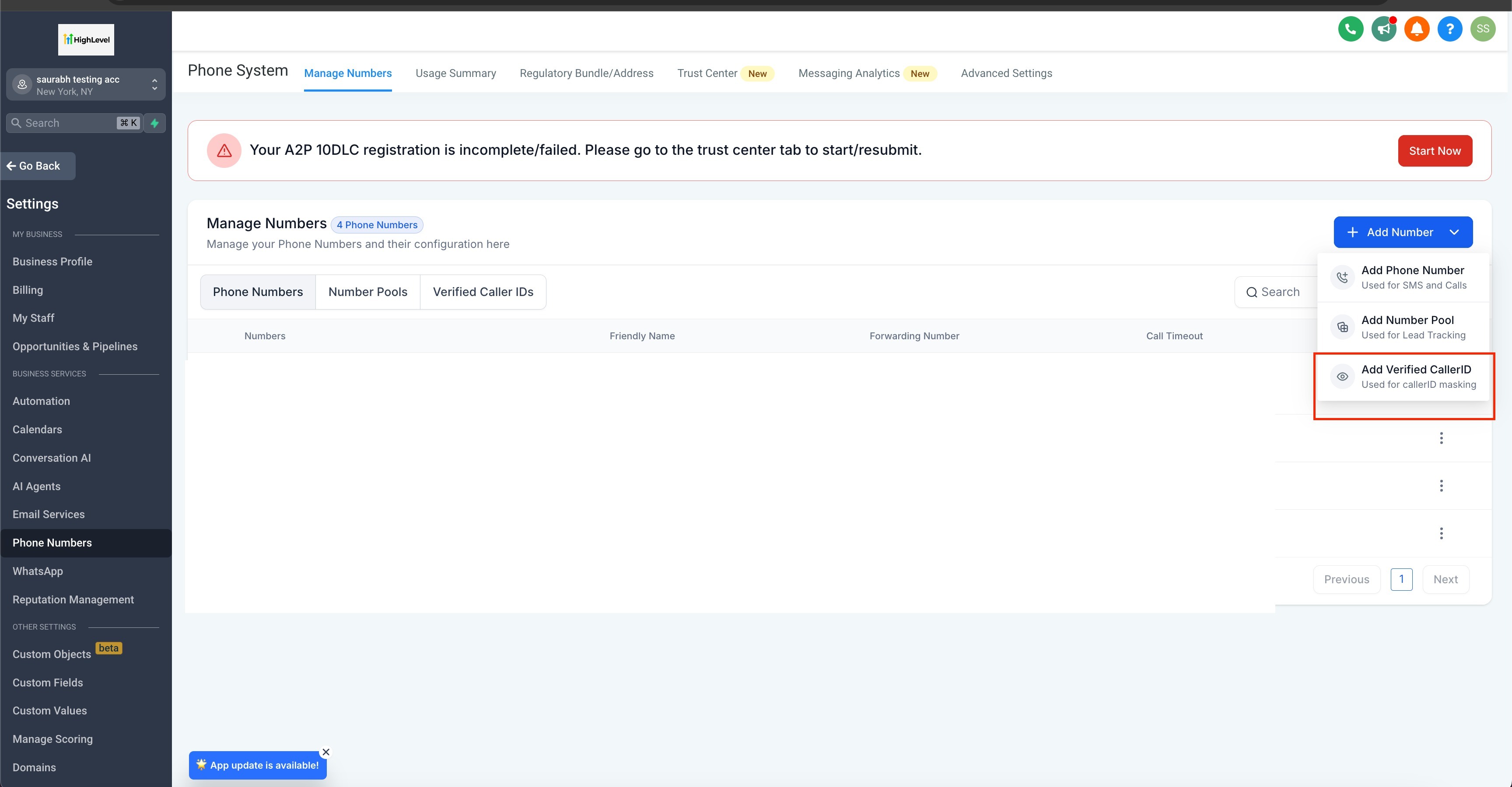 Step 4: Click on Add Verified Caller ID Under Add Number Tab