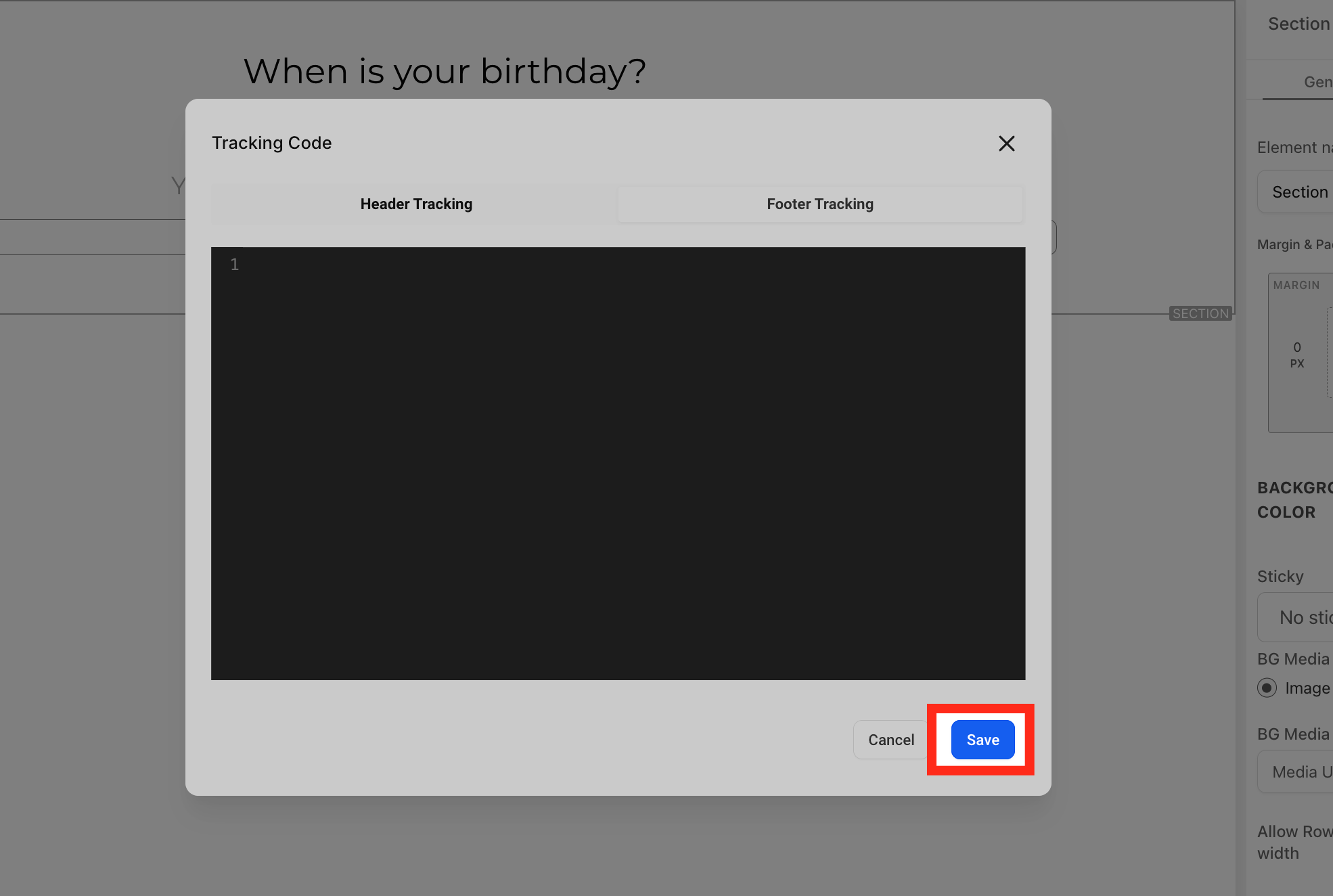 Click the "Footer Tracking" option at the right side.