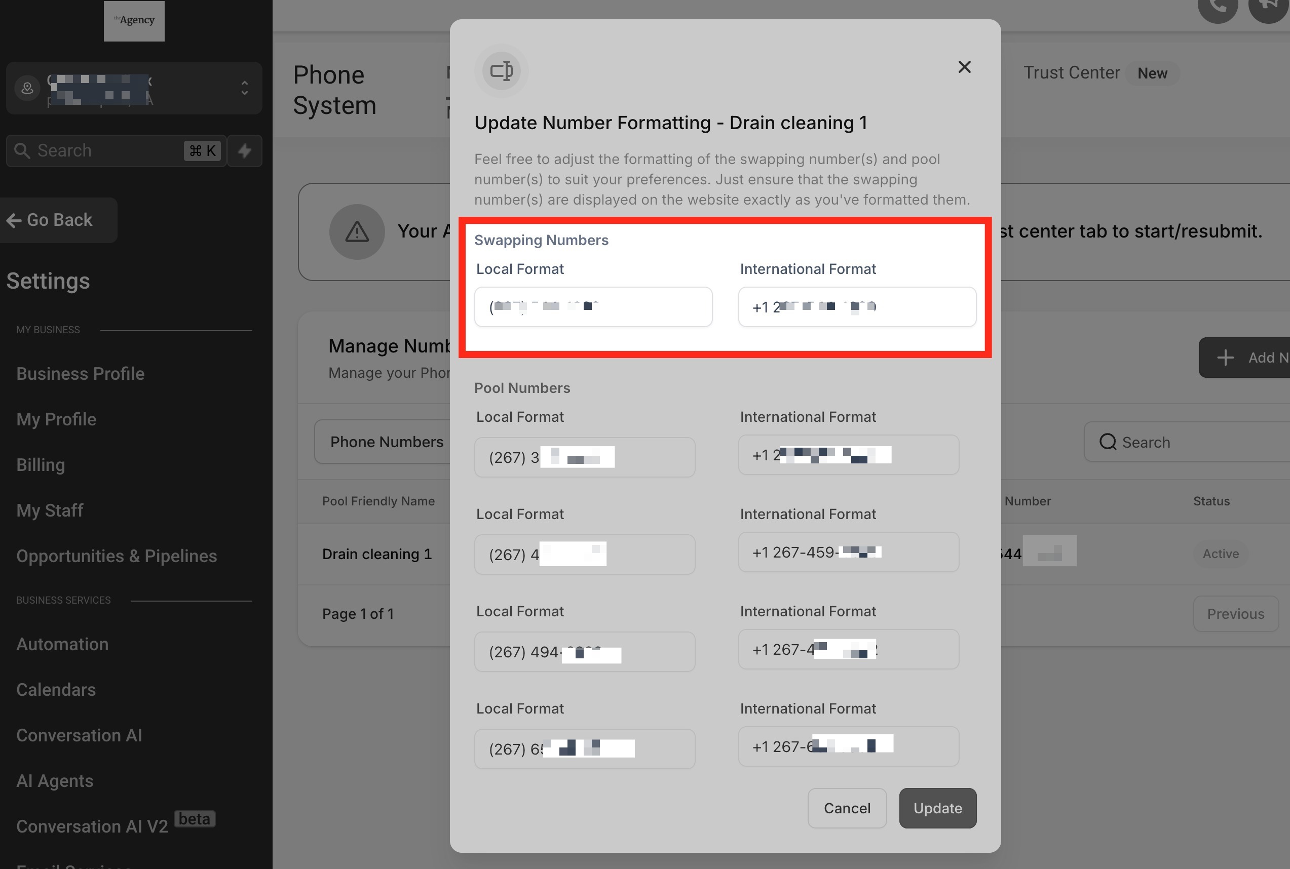 Click Save. This will swap the number within the entire Funnels/Websites.