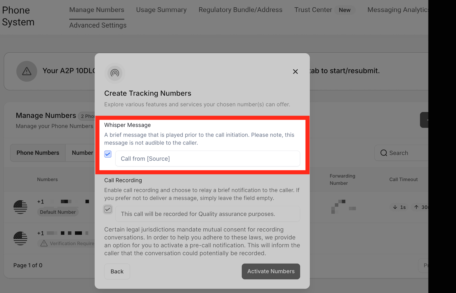 Click on Activate Number
