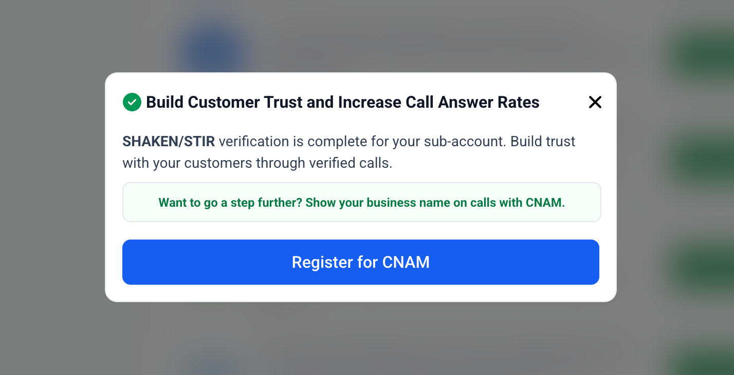 Tip: SHAKEN/STIR works best when combined with CNAM registration, which displays your business name alongside your number.