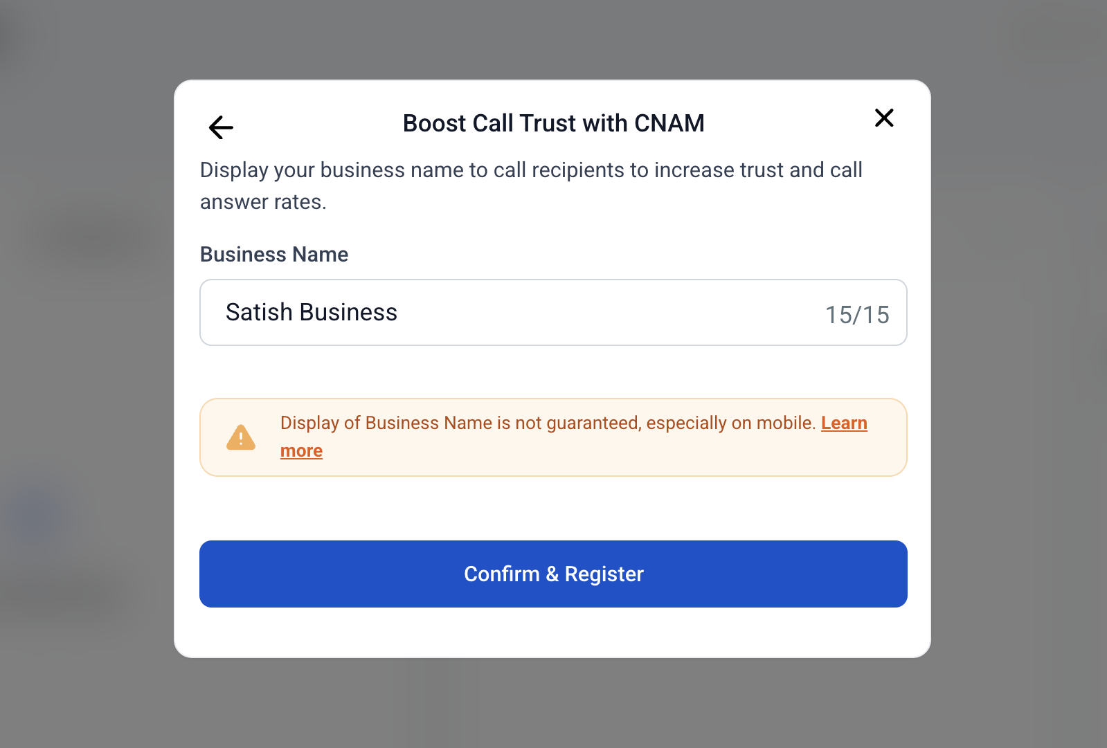 Note: CNAM doesn't remove nuisance labels, but accurate caller information can enhance answer rates.Ensure your number correctly displays your business name on the caller ID.