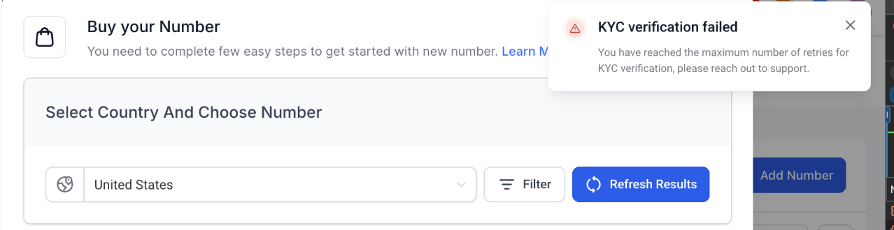 Each user is allowed a maximum of 10 attempts to complete their verification. It’s important to double-check your information and documents before submitting each attempt. Repeated failed attempts may result in delays or temporary restrictions from retrying the process.