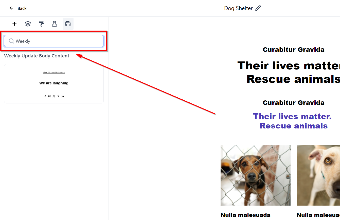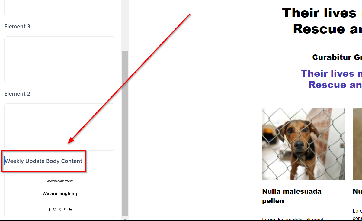 Click the Rename button to Edit the text to desired name, in this example we have renamed it as "Weekly Update Body Content".