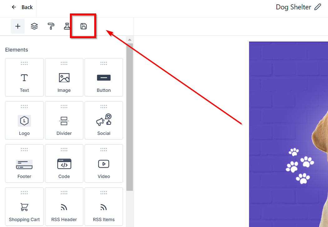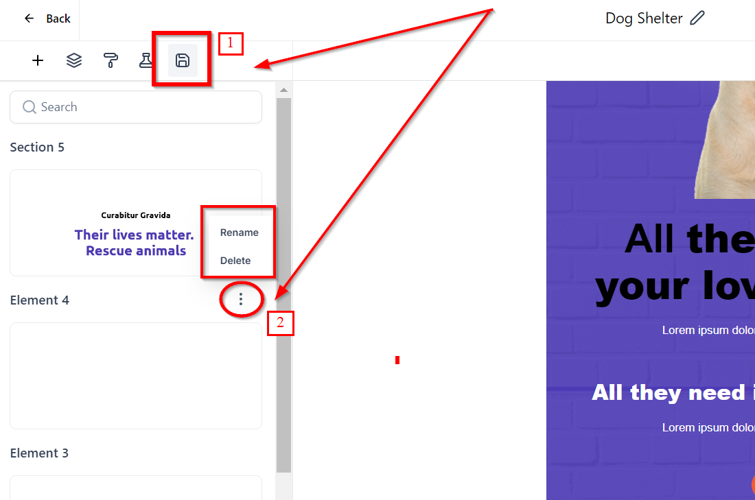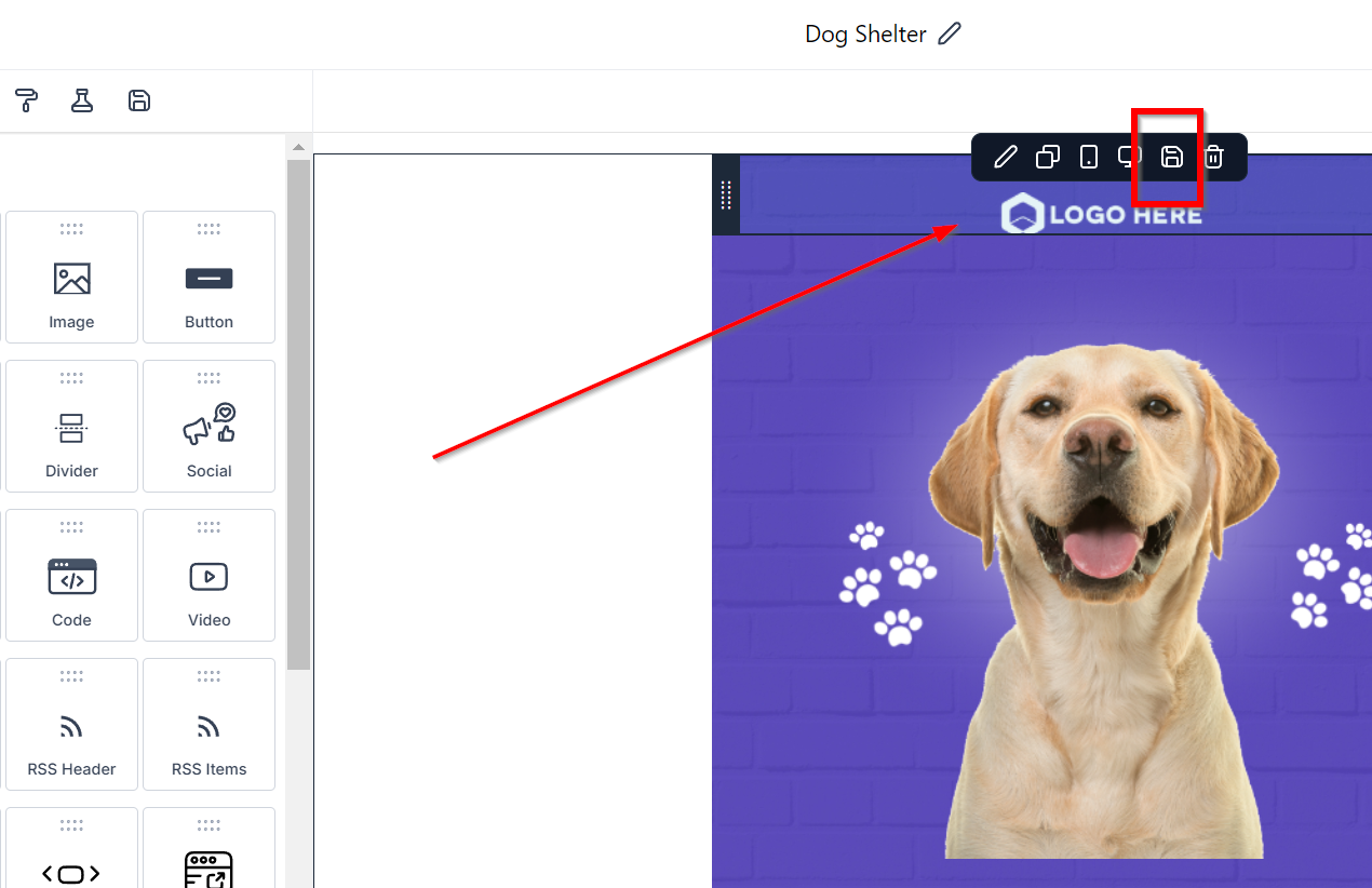 Step 3 | Hover over the element or layout and click on the "Save" icon