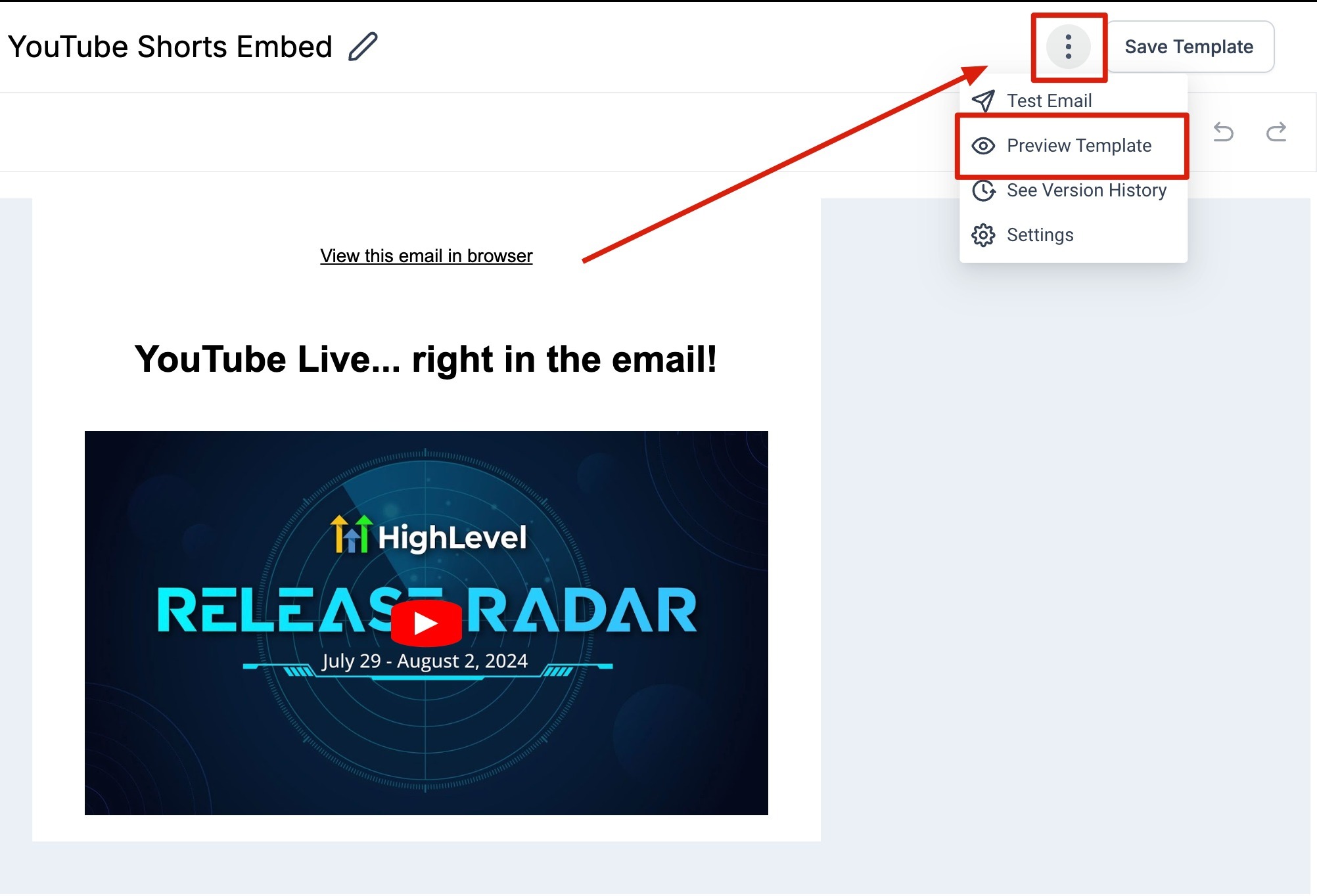 Step 3. Click on the three dots located at the top right corner to access the *Preview Template *