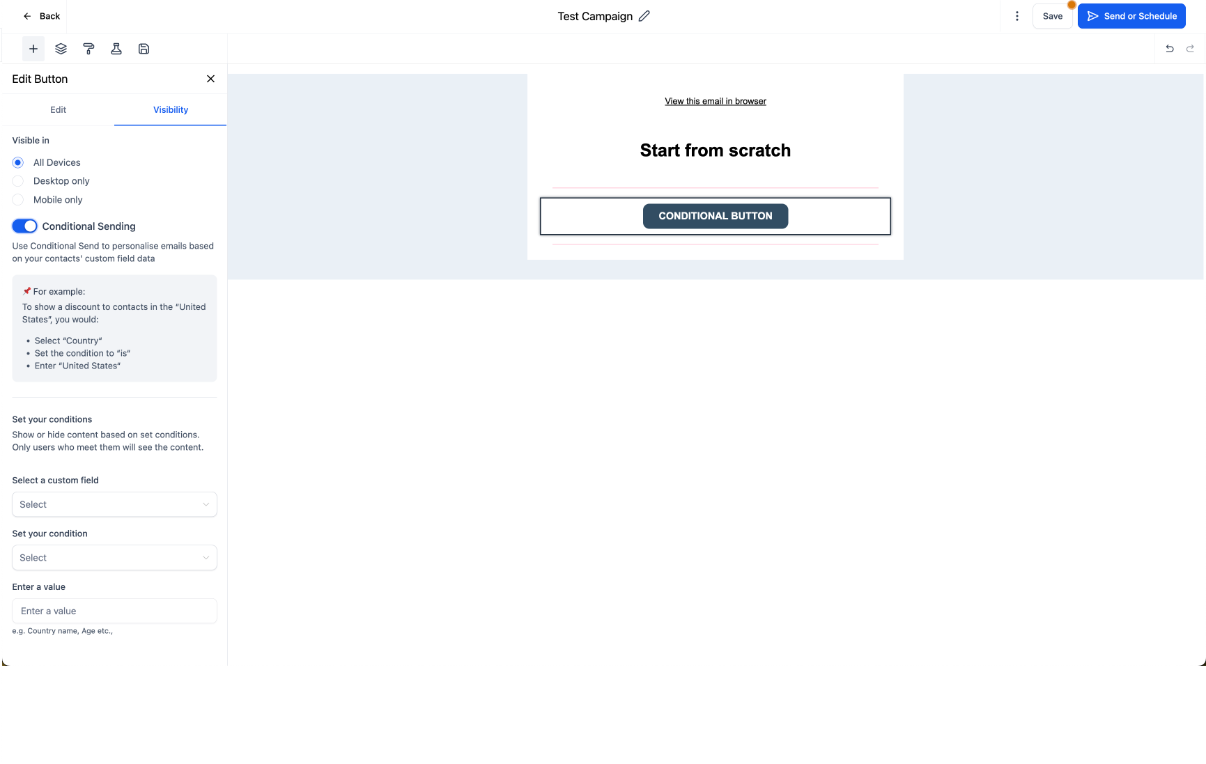 - Time-Saving: Avoid the need to create smart lists and separate campaigns—use one campaign with conditional elements instead.