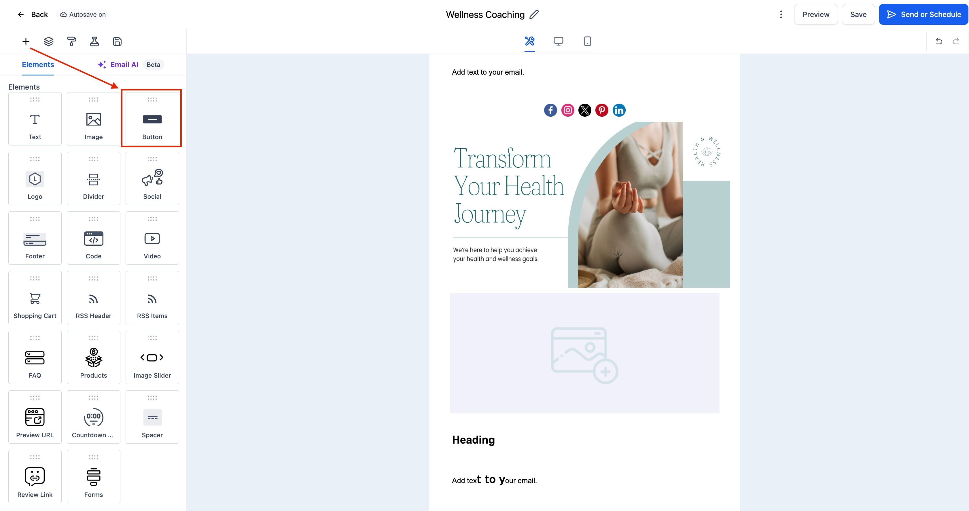 Follow these steps to add and configure the Button Element in your email template: