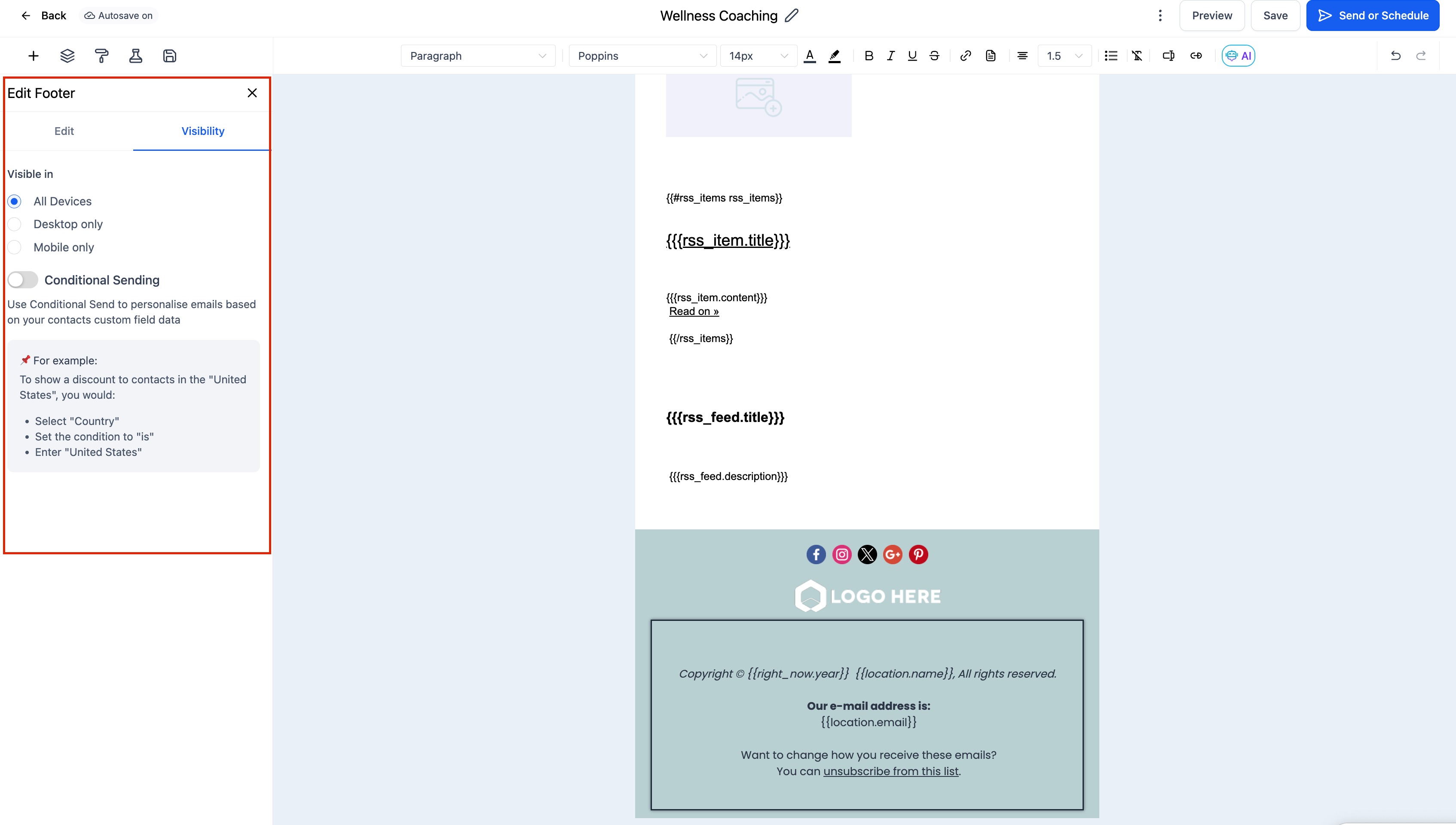 Using the Footer Element in your email design offers several advantages: