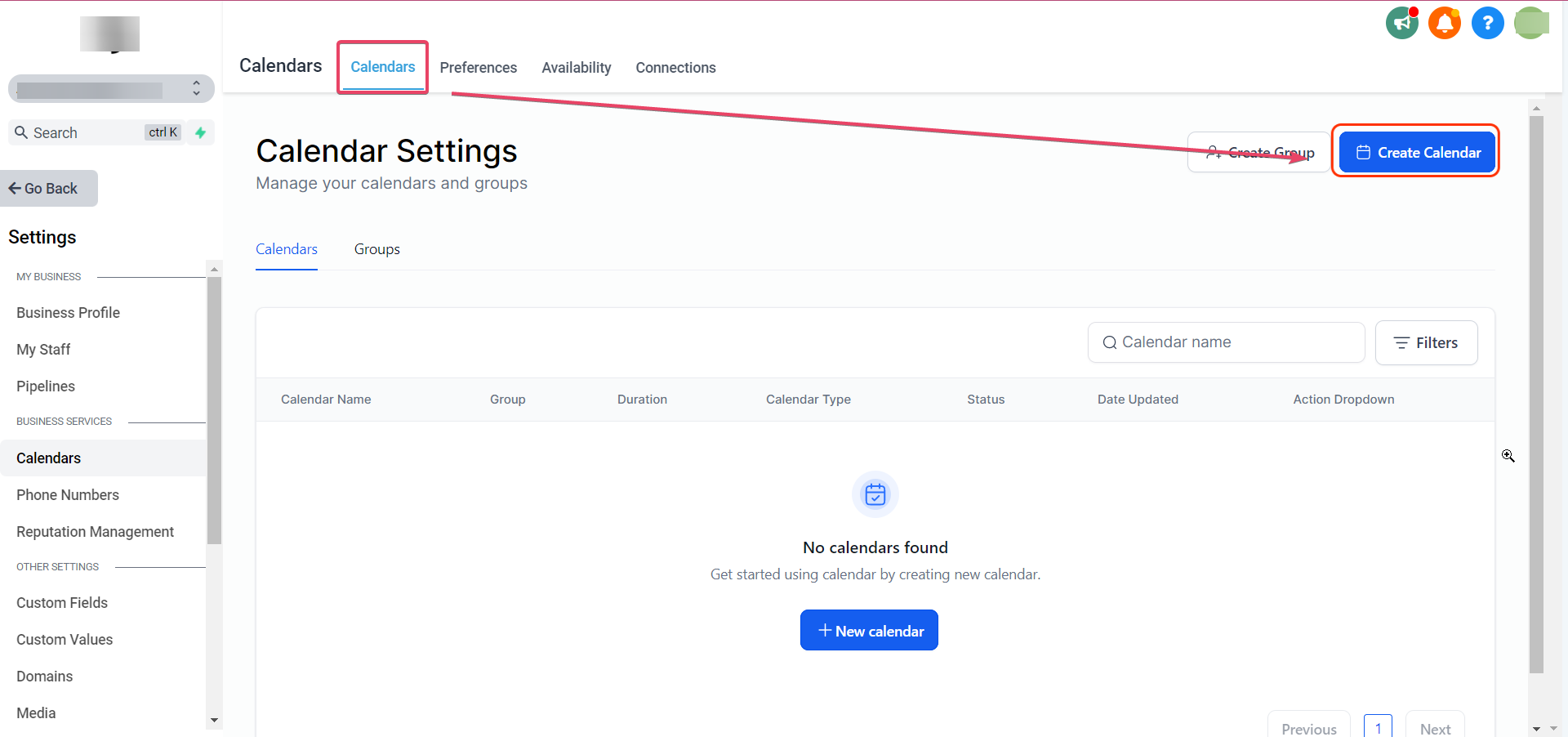 Click on Create Calendar