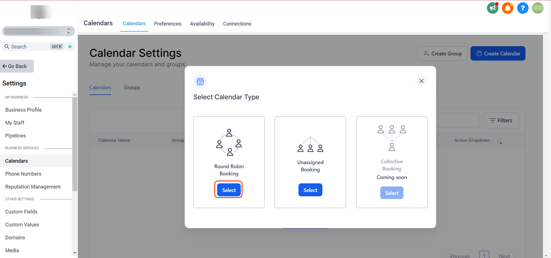 Click on Select Under Round Robin Booking