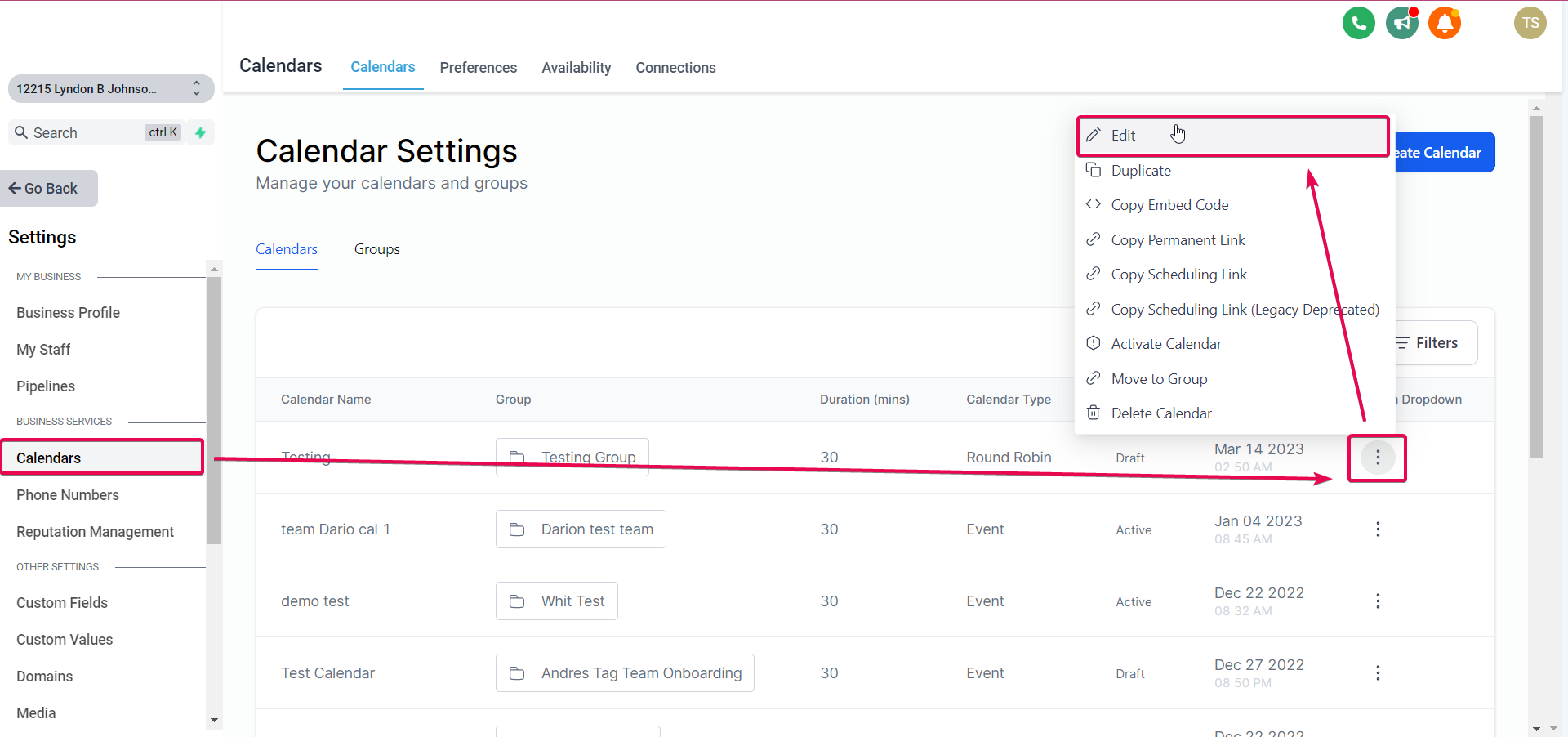 You can edit an existing Calendar or create one to add a logo. Go to Sub-Account Settings>Calendars>Three dots in front of the Calendar you want to edit> Edit Calendar.