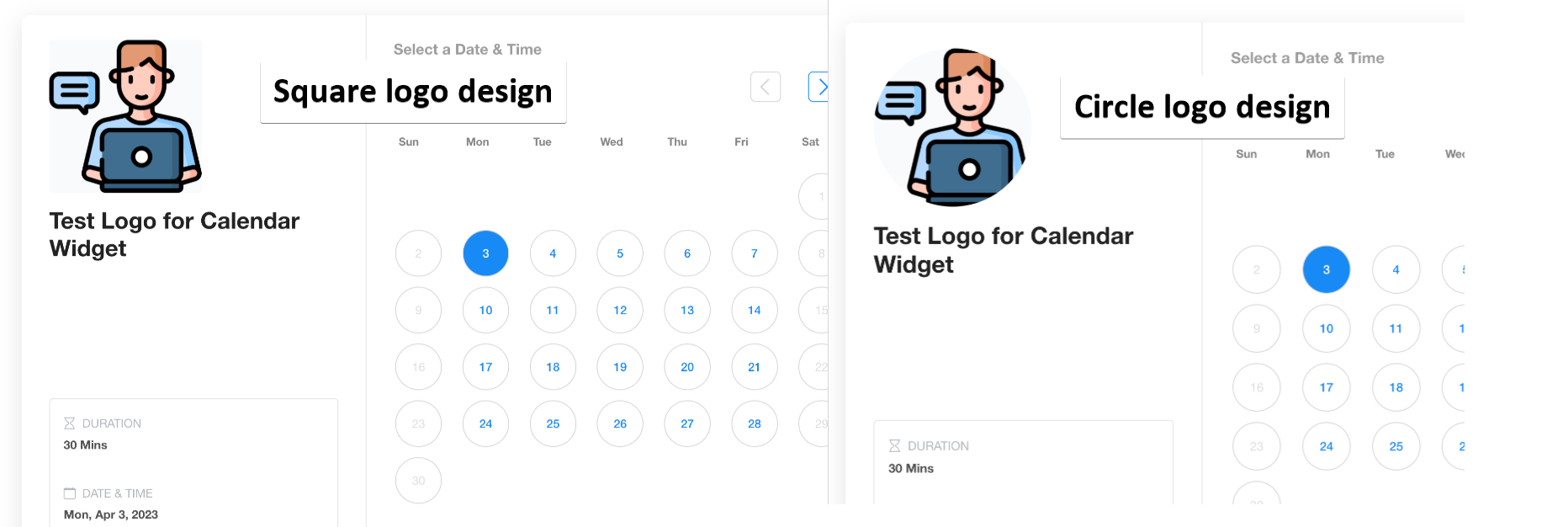 The Calendar widget logo can be updated to represent your client's company branding. It allows more personalization and customization to be done to the Calendar Booking widget.