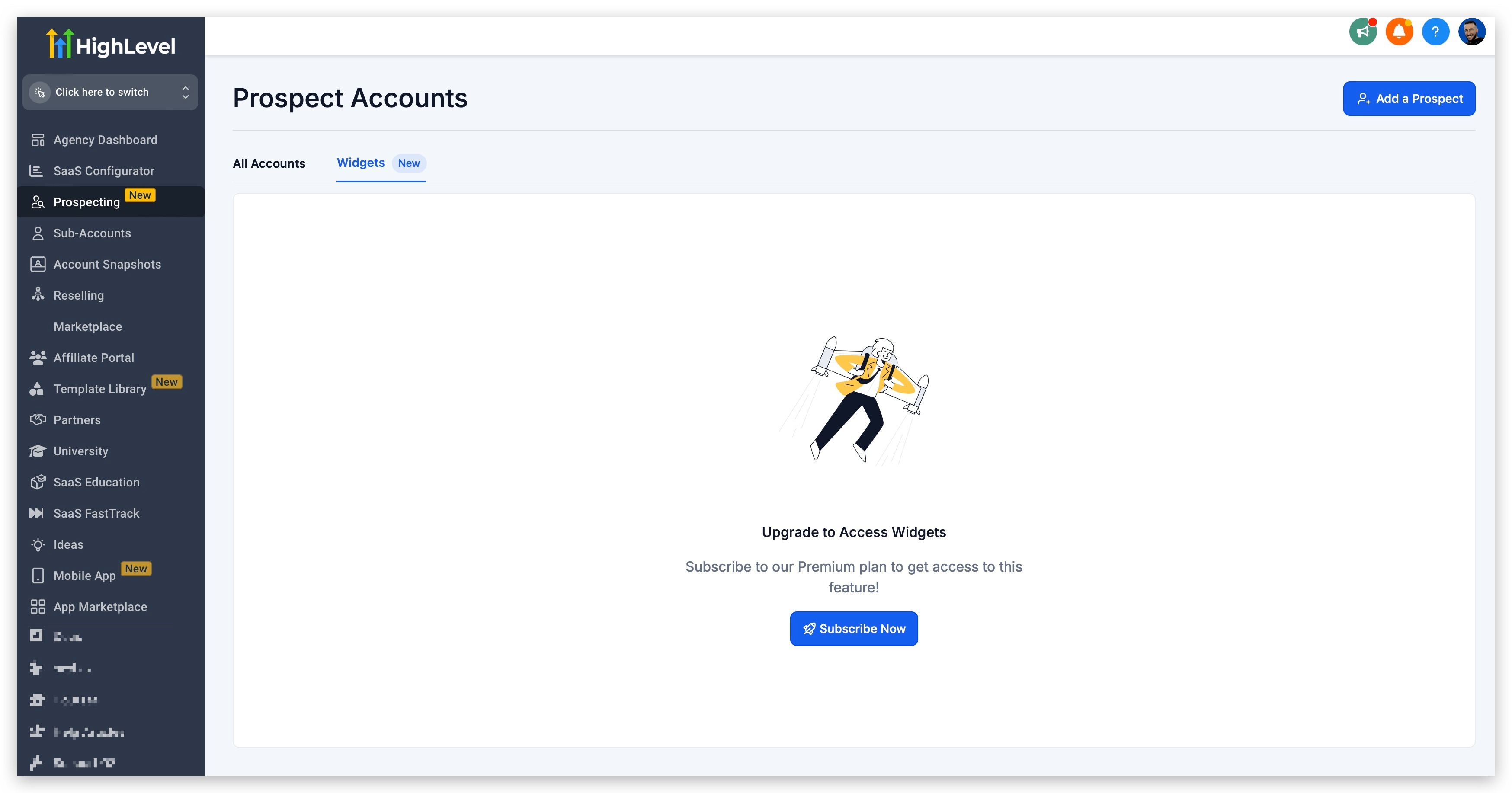 Navigate to the "Prospecting" section in your "Agency View". That is where you can create new widgets.