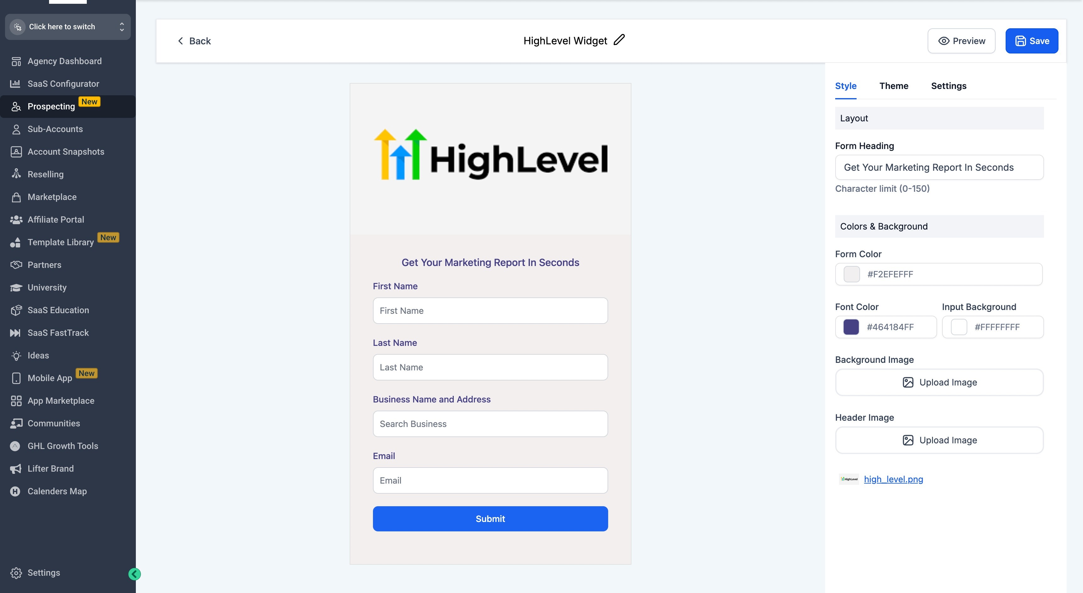 Navigate to the page or section where you want to embed the Prospecting Tool Widget. This could be a dedicated lead generation page, a sidebar, or any other suitable location.
