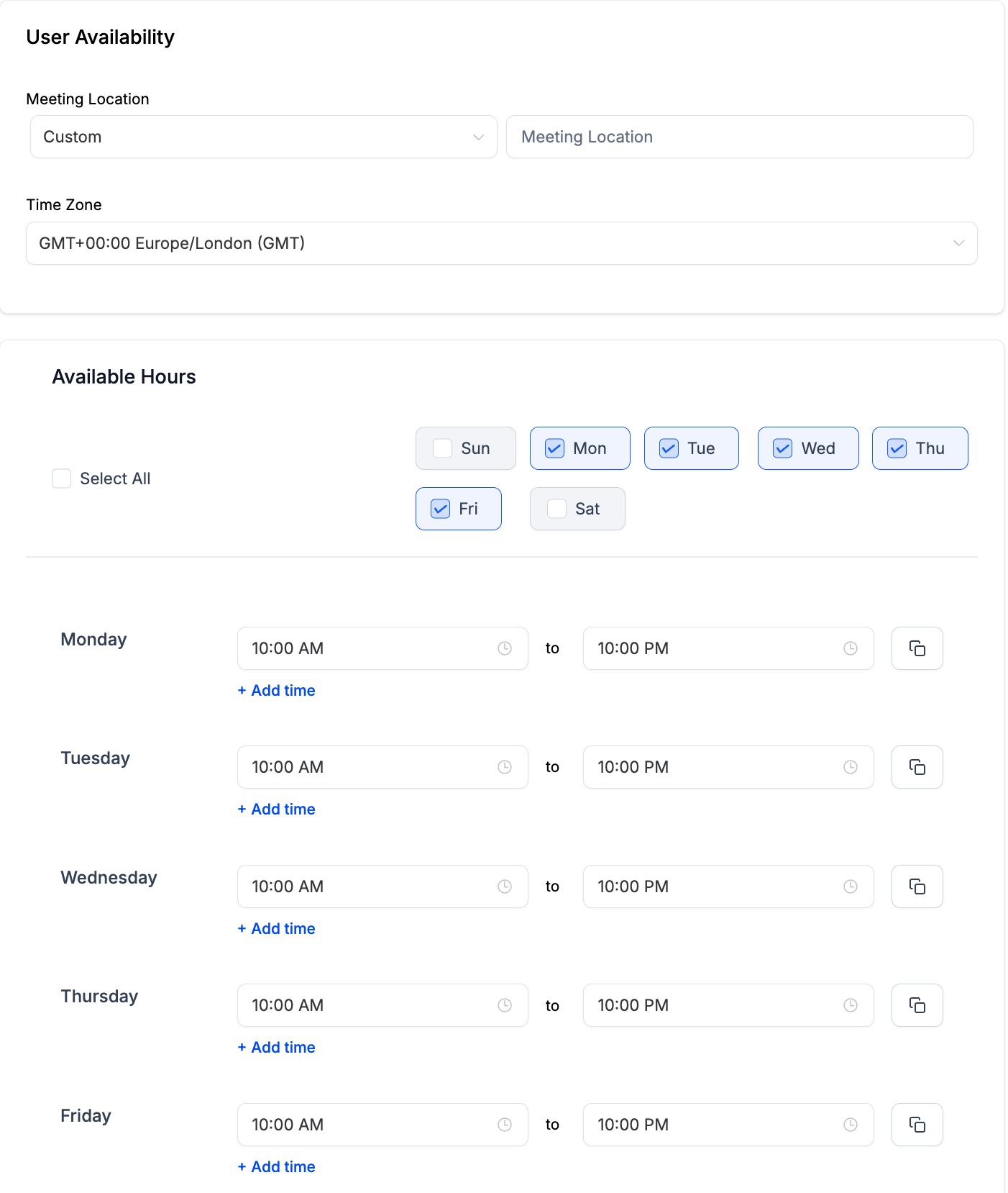 - Simply input your usual availability, e.g., 9 am to 5 pm.