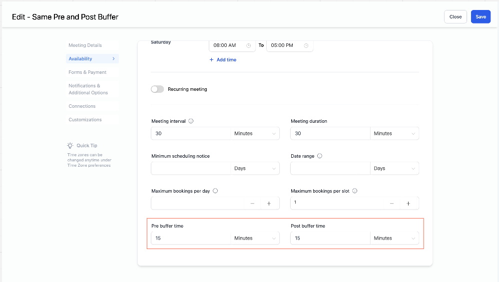 These buffers will ensure you have the extra time you need before and after your appointments.