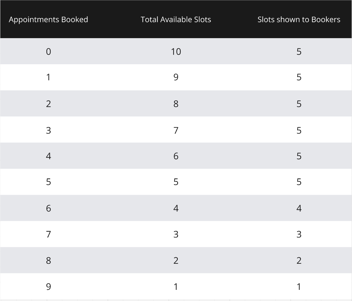 - Appointment Modal: All slots are shown in the in-app appointment modal, regardless of the "Look Busy" setting.
