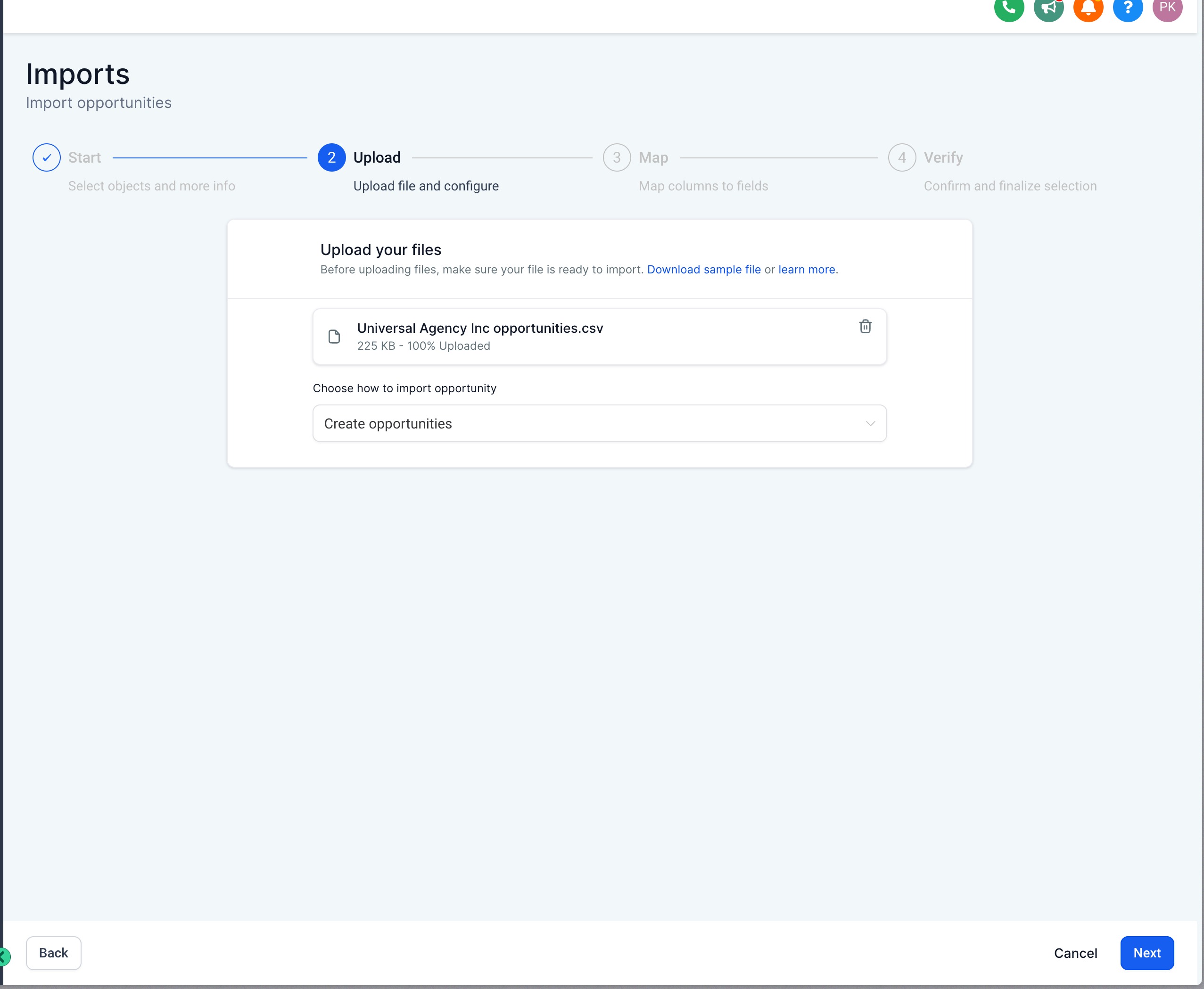 - Create Opportunities: Use this option to upload only new records into the system.