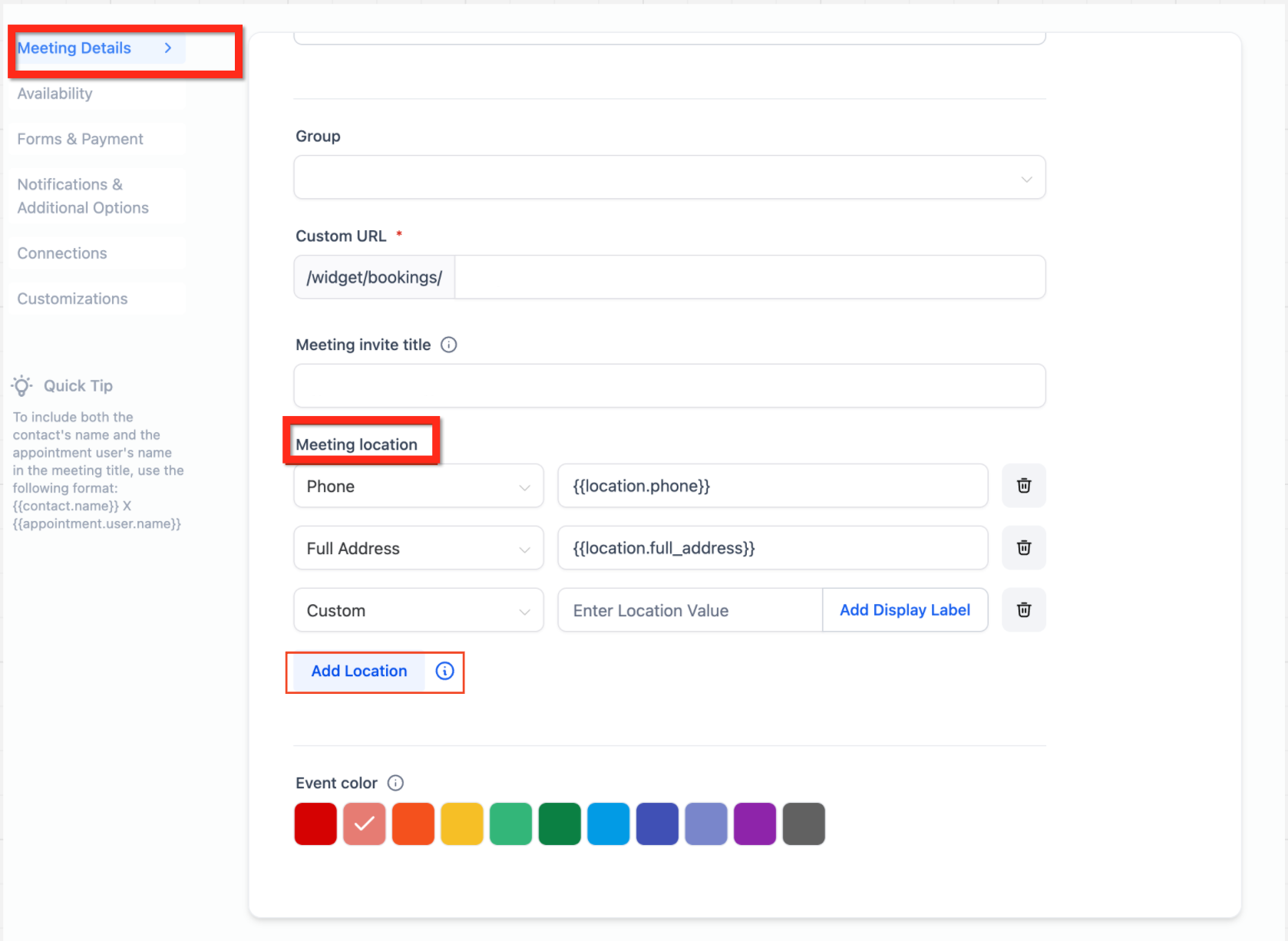 If you need assistance configuring meeting locations or understanding how they appear during booking, use the in-app help search to explore related scheduling articles or contact support for guidance.