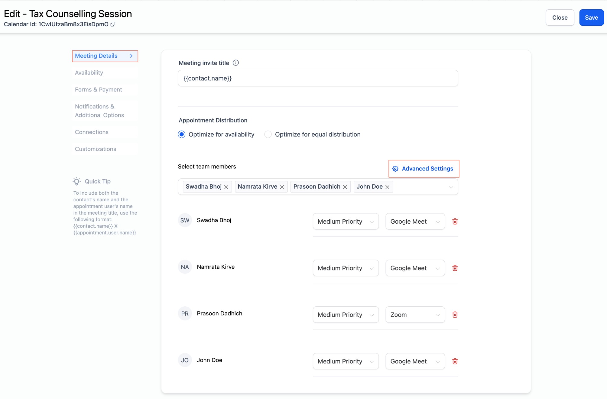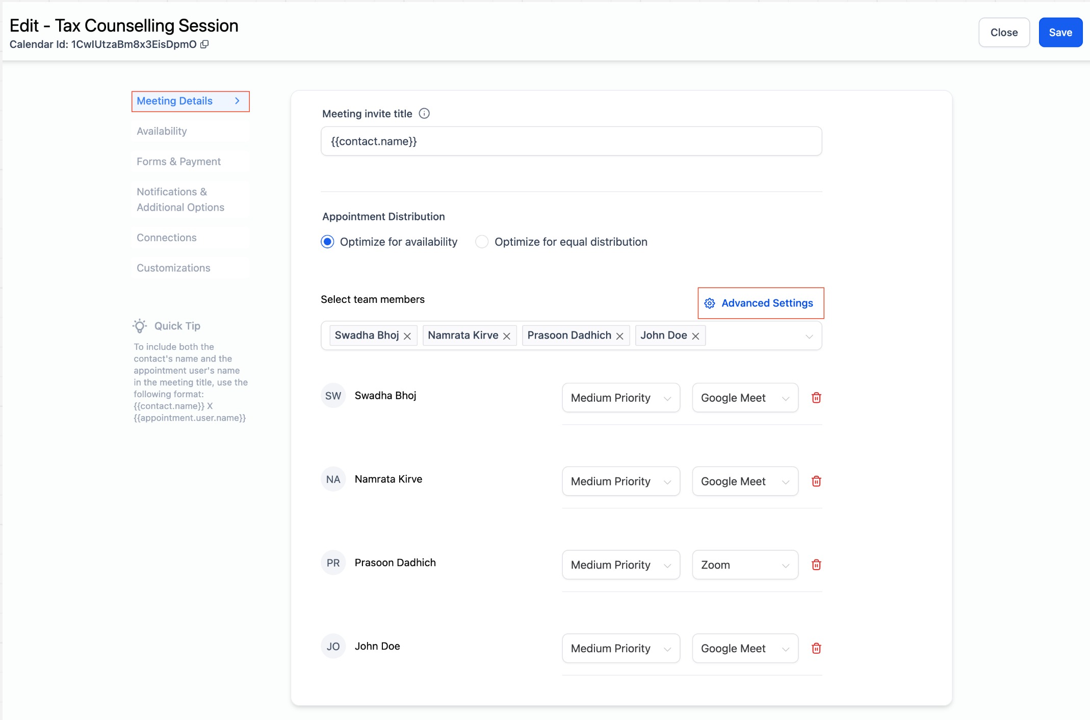 - No Assigned User: If the contact has no assigned user, the appointment is assigned through round-robin scheduling.