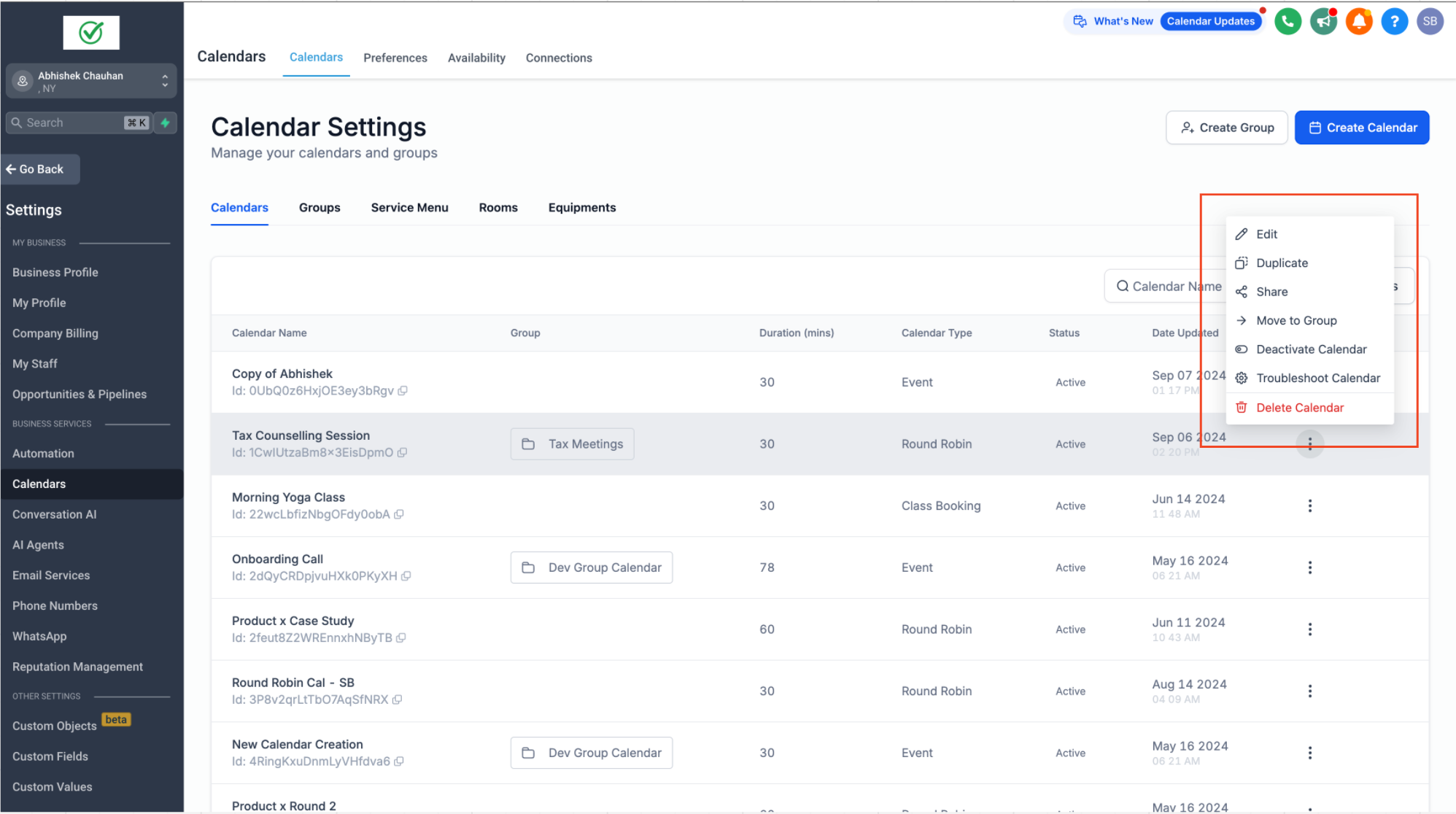 - Navigate to Calendar Settings.