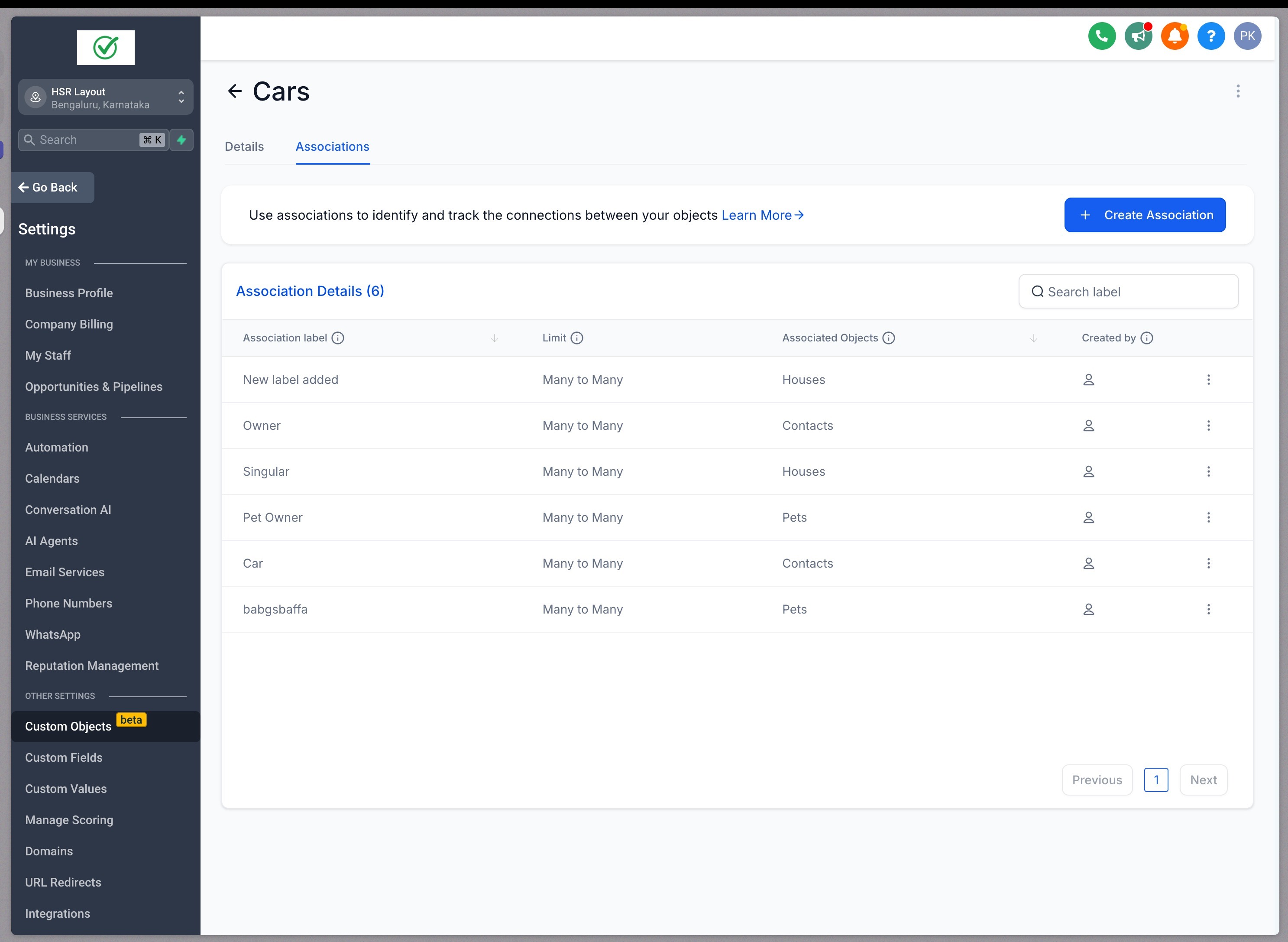 - You can also add the associated objects as columns in the list view for quickly accessing which records is any object record associated with.