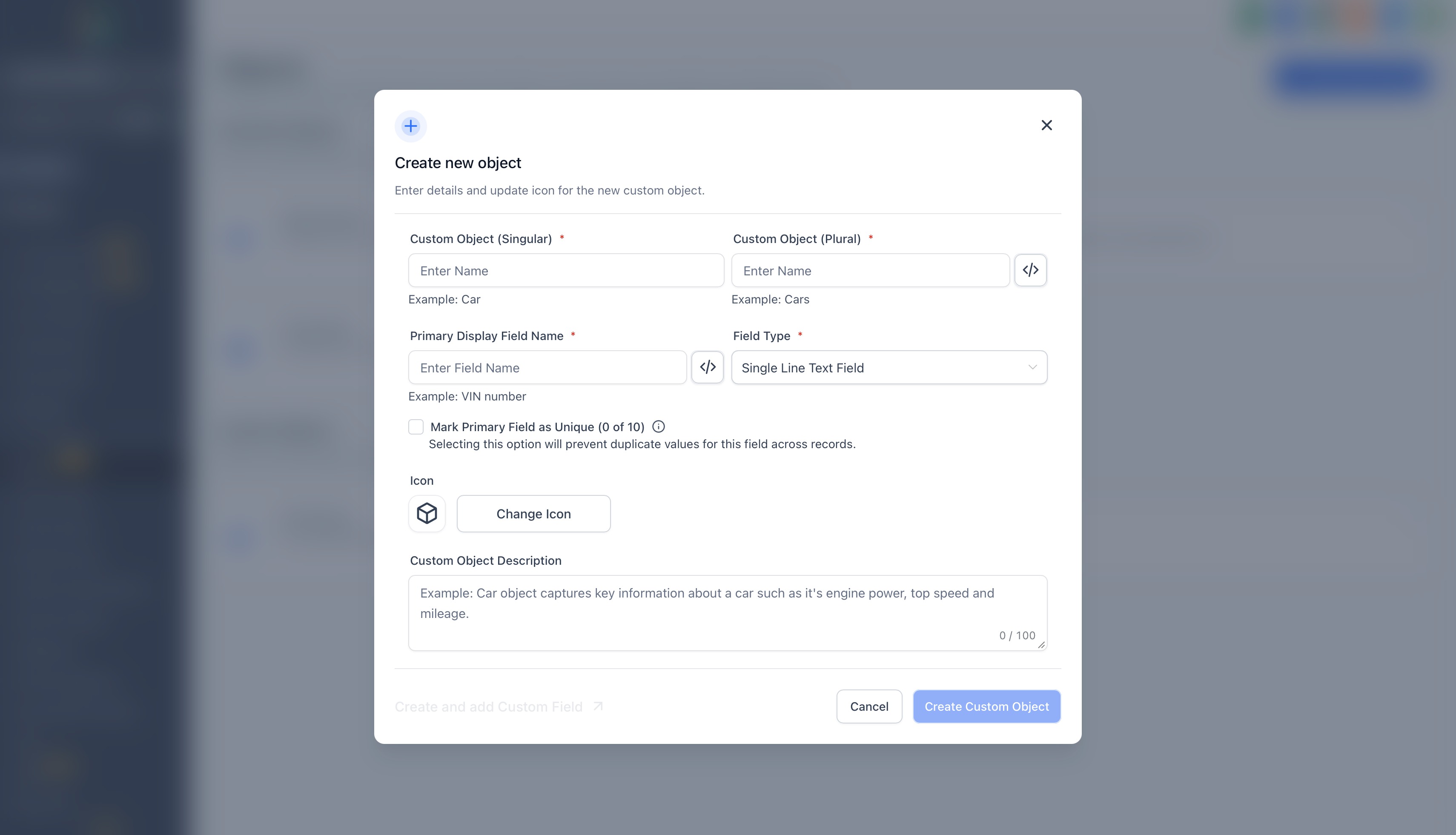 Choose an Icon and add a Description to help your team understand the object’s purpose.