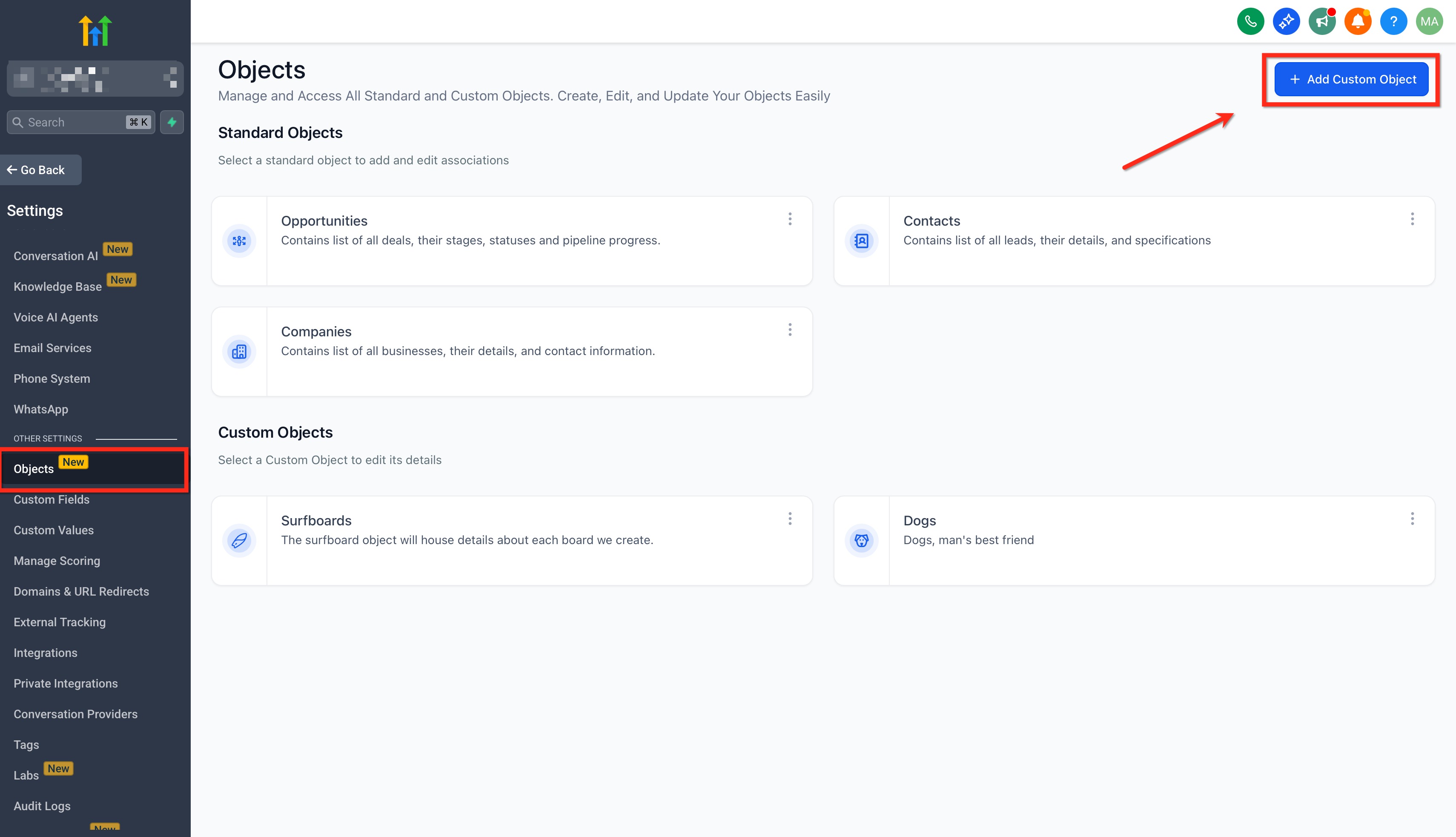 Plan access & limits: available on all plans; up to 10 Custom Objects per location.