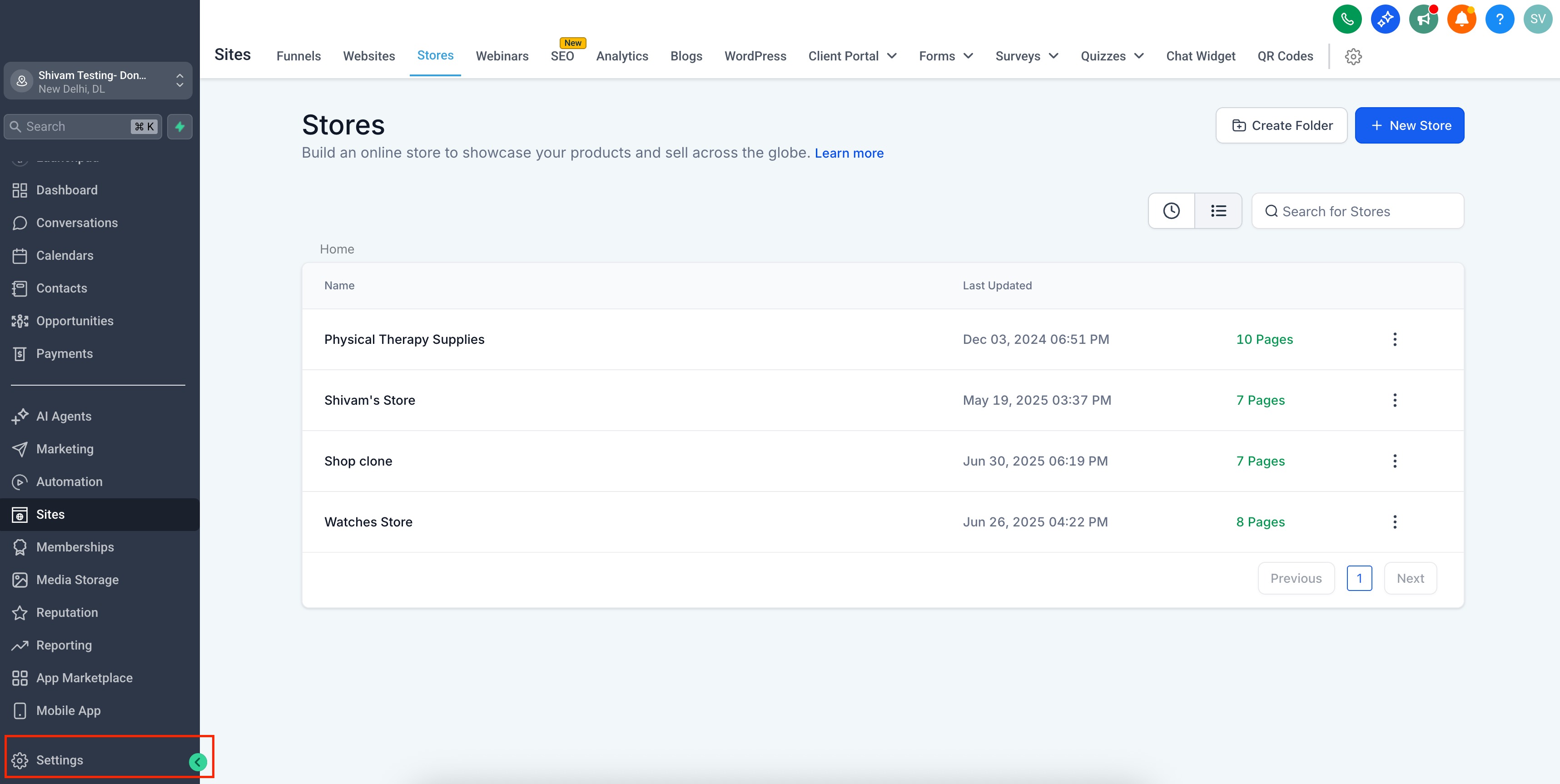 Make sure at least one location is listed as active.