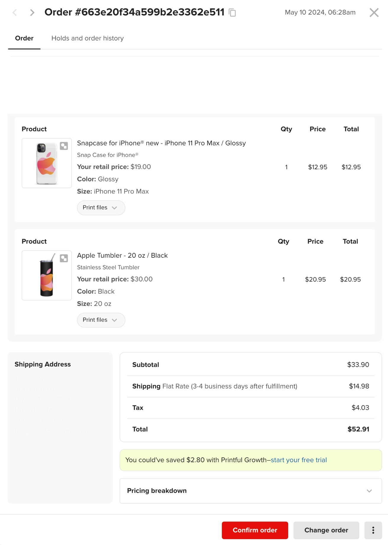 - Notification based on order status: Once the order is fulfilled either partially or complete, the users will receive notifications via email. The shipping details will be shared by Printful's end.