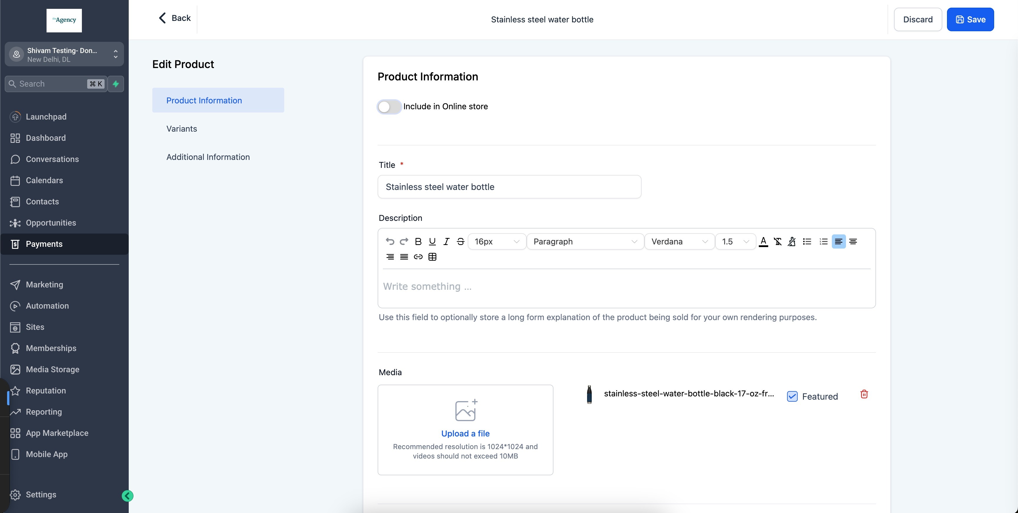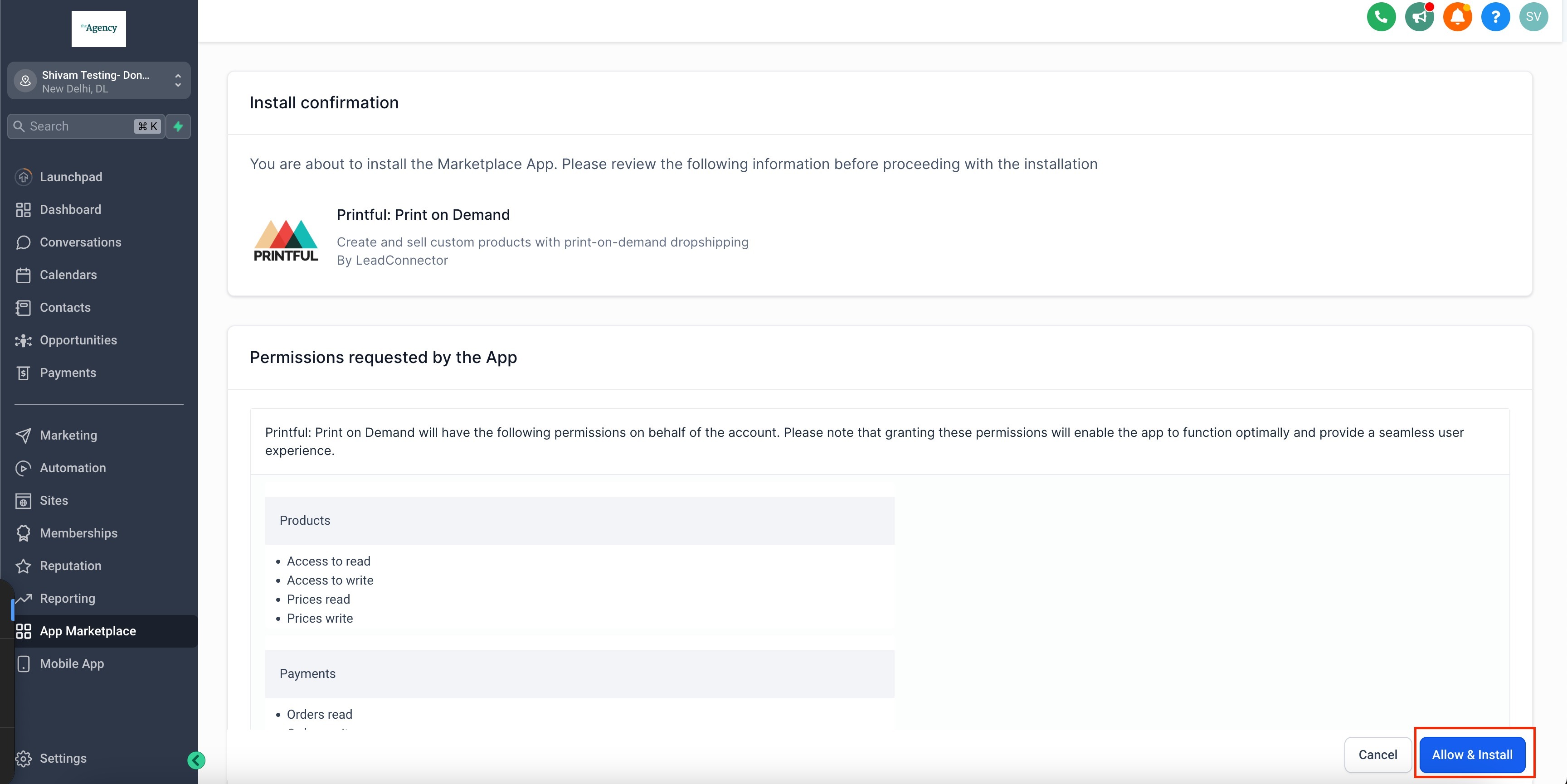 - Product Retention: Upon uninstalling the Marketplace App, products will not be deleted from the LeadConnector store location.